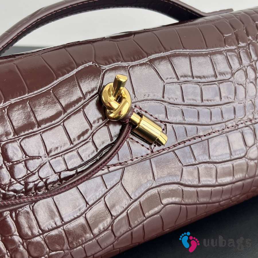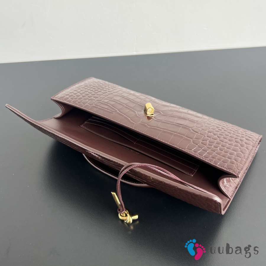 Bottega Veneta Andiamo Clutch in Burgundy Crocodile-Embossed Leather 31x13x3cm