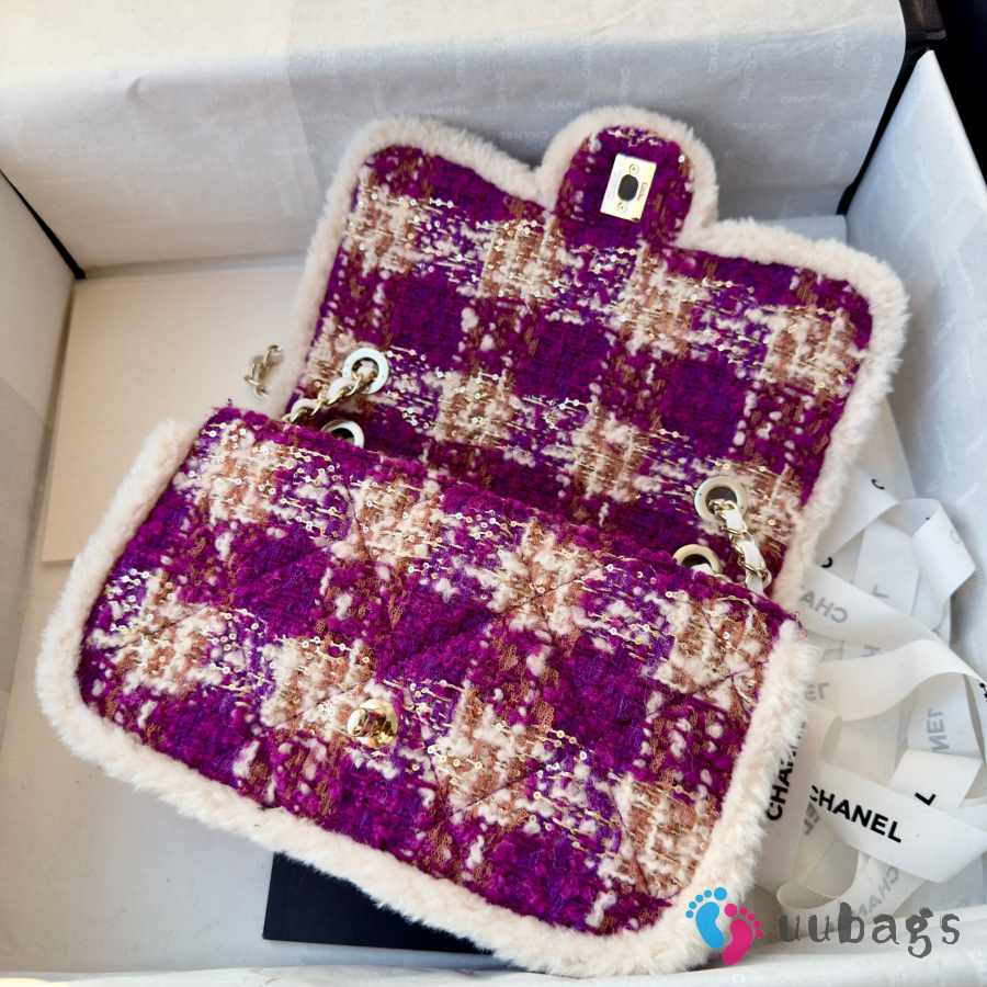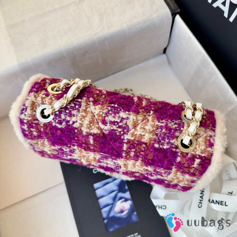 Chanel Medium Flap Bag Tweed, Sheepskin & Gold-tone Metal In Fuchsia, Pink, Beige & Brown 25cm