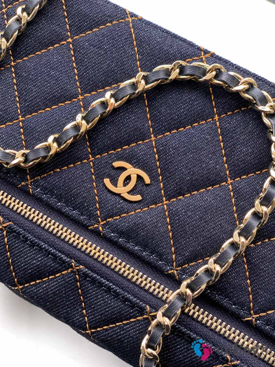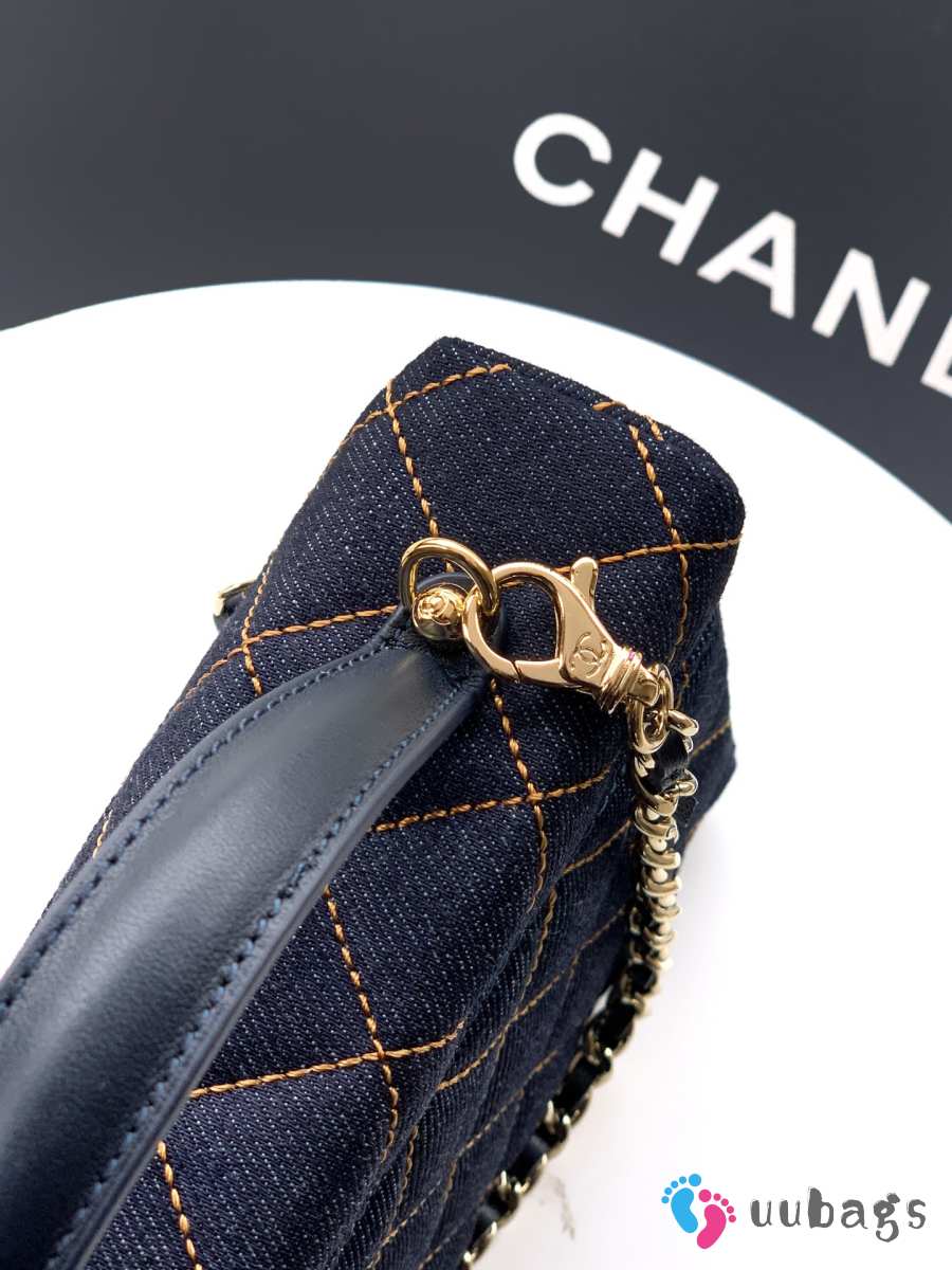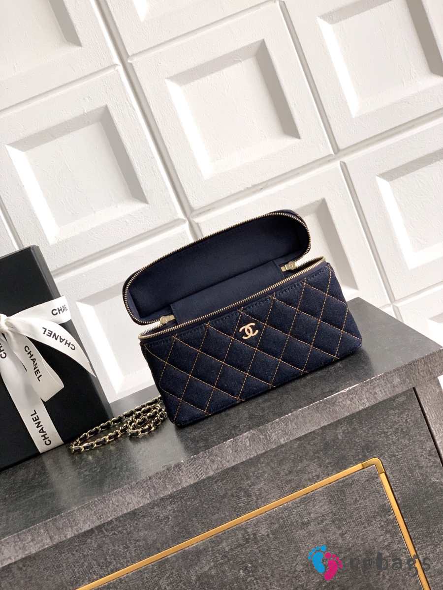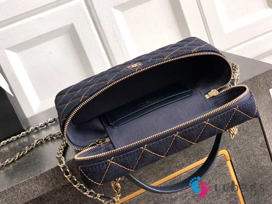 Classic Vanity with Chain Denim Bag & Gold Metal In Dark Blue & Orange 17x19.5x5cm