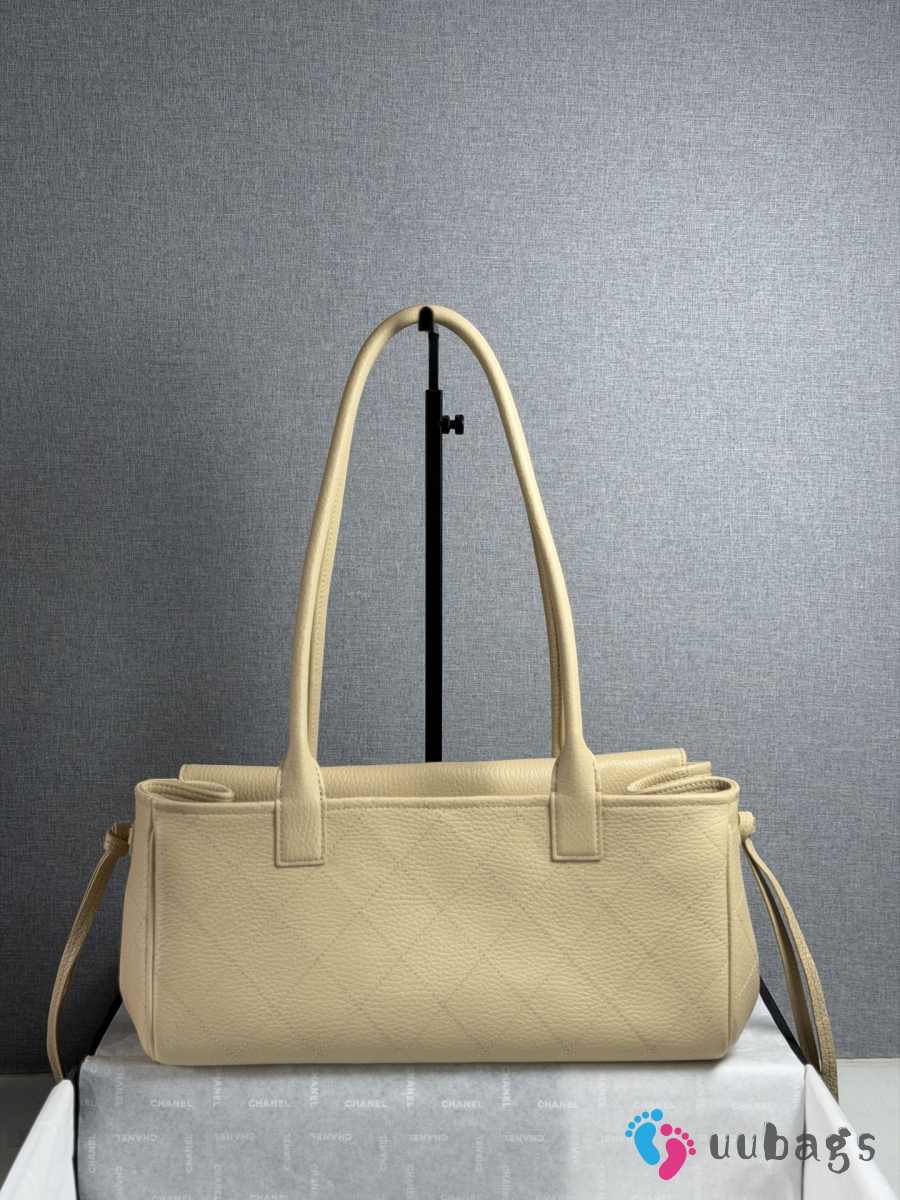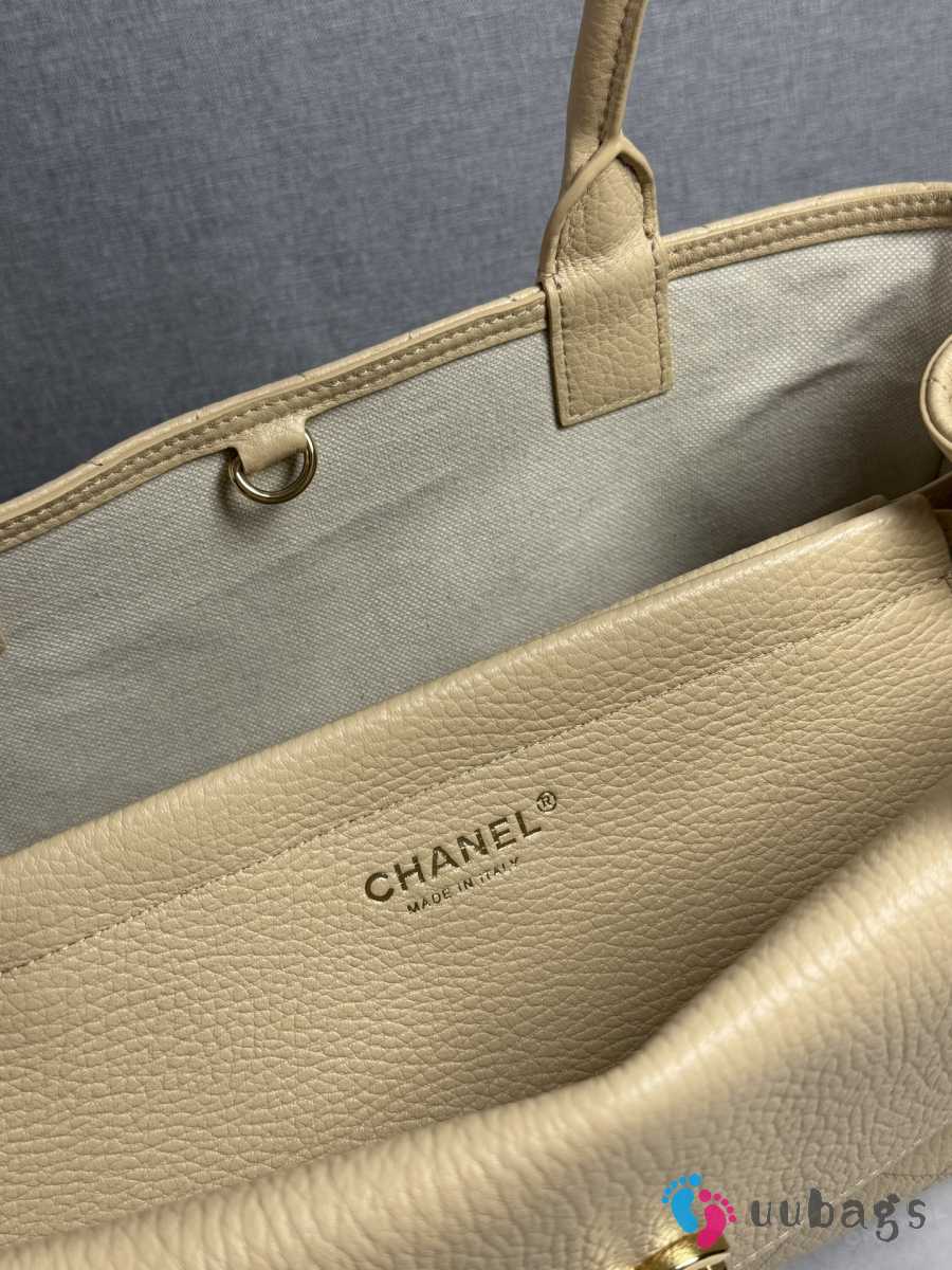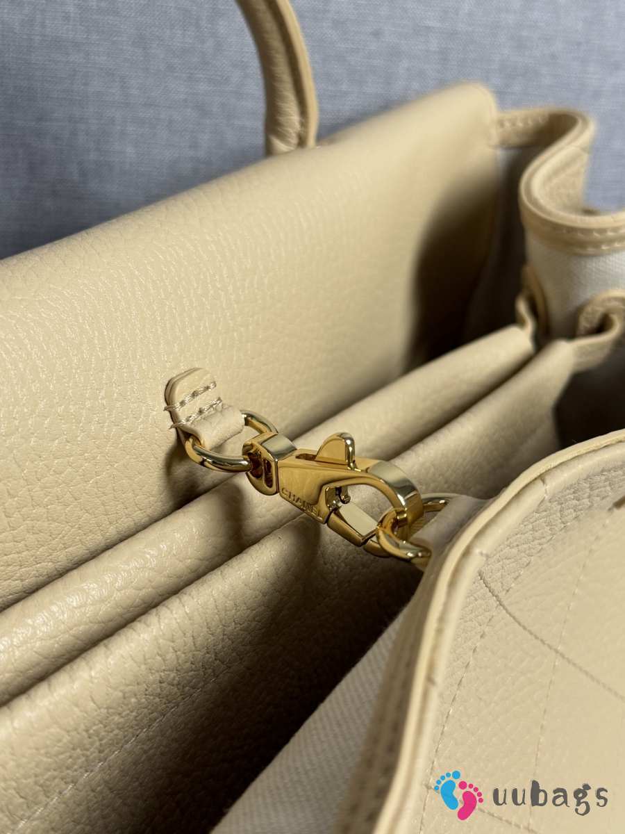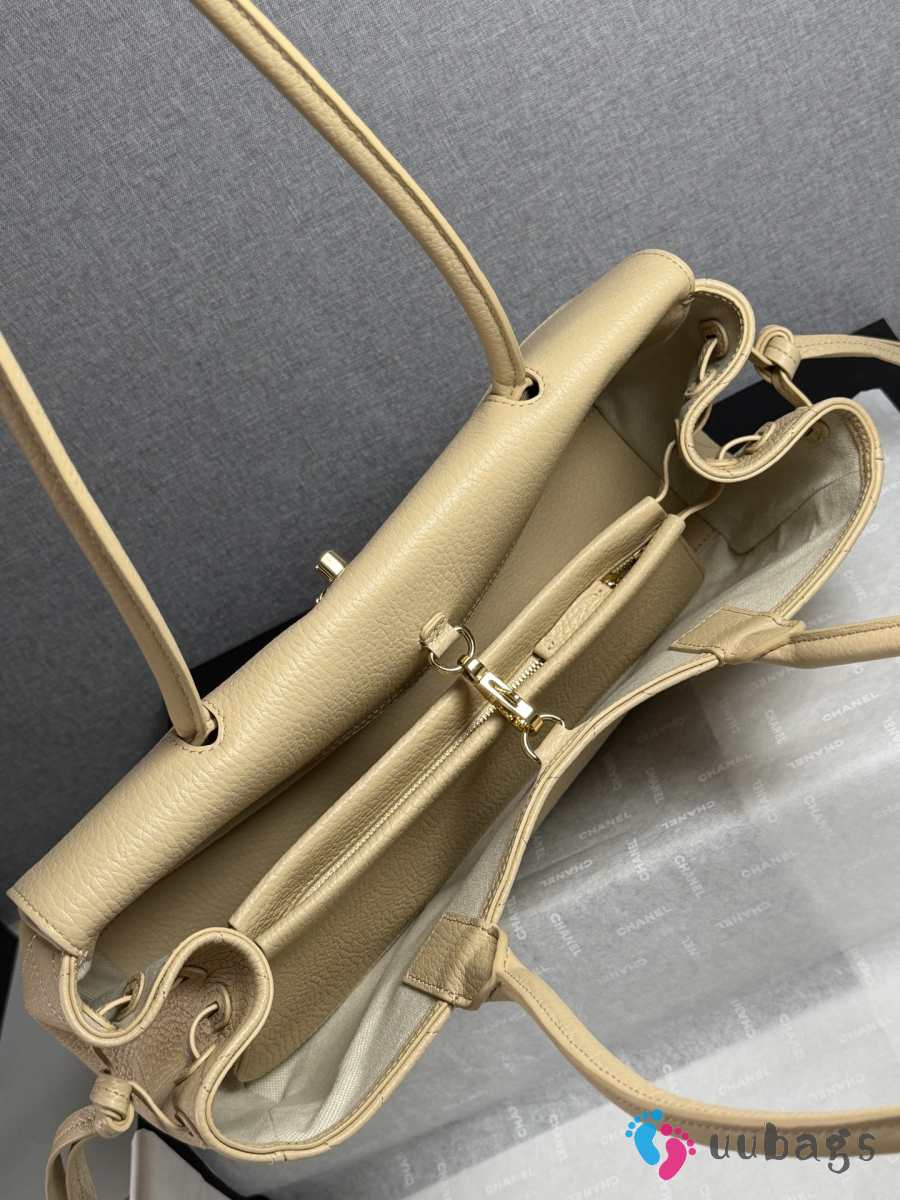 New Arrivals 2026 Chanel AS6288 small shopping bag grained calfskin & gold-tone metal in beige 15x30.5x11.5cm