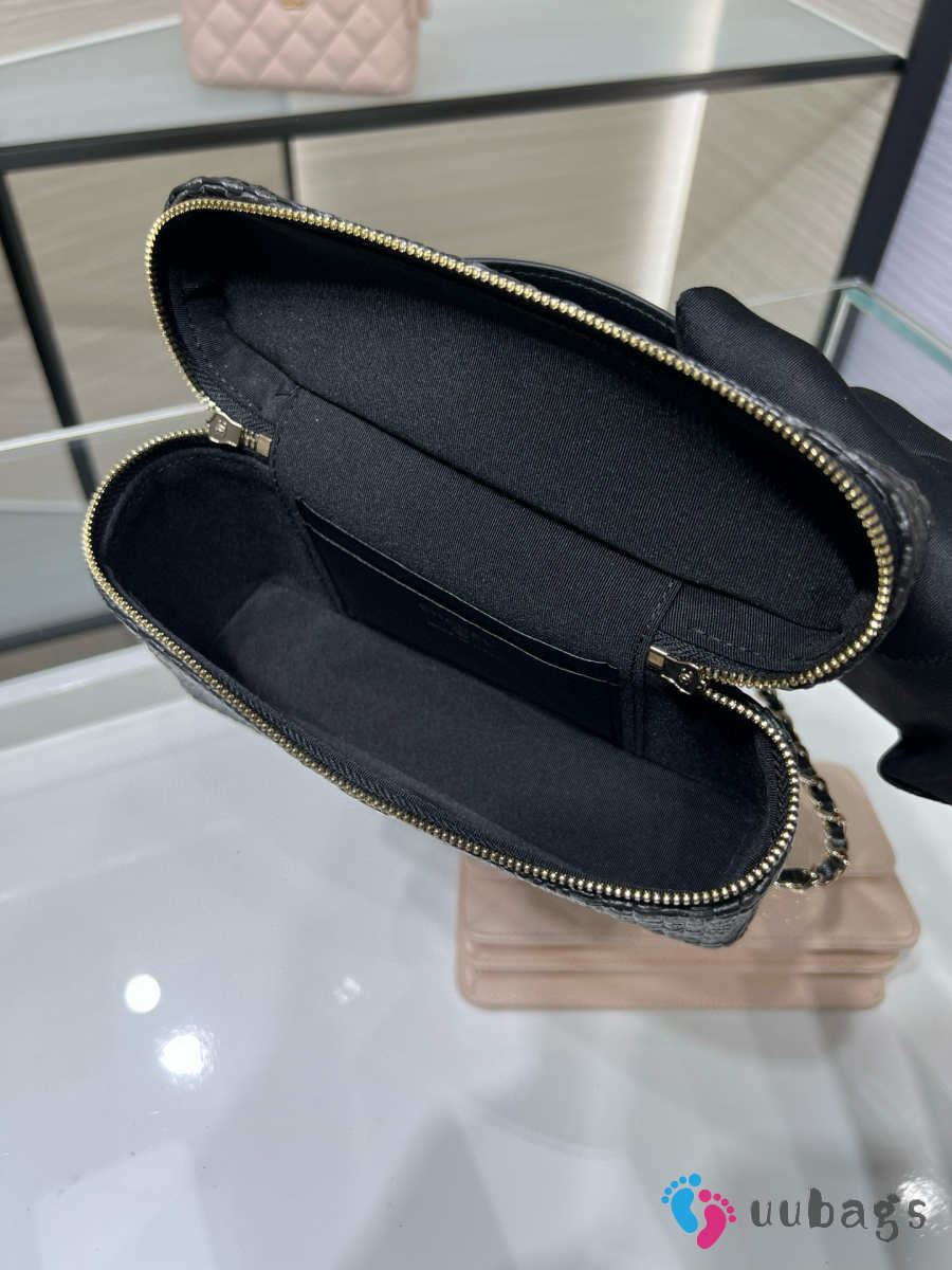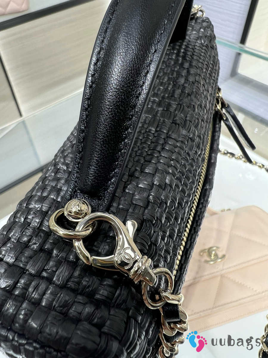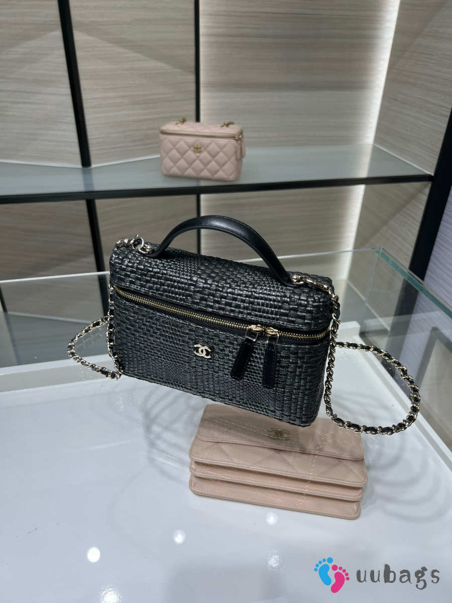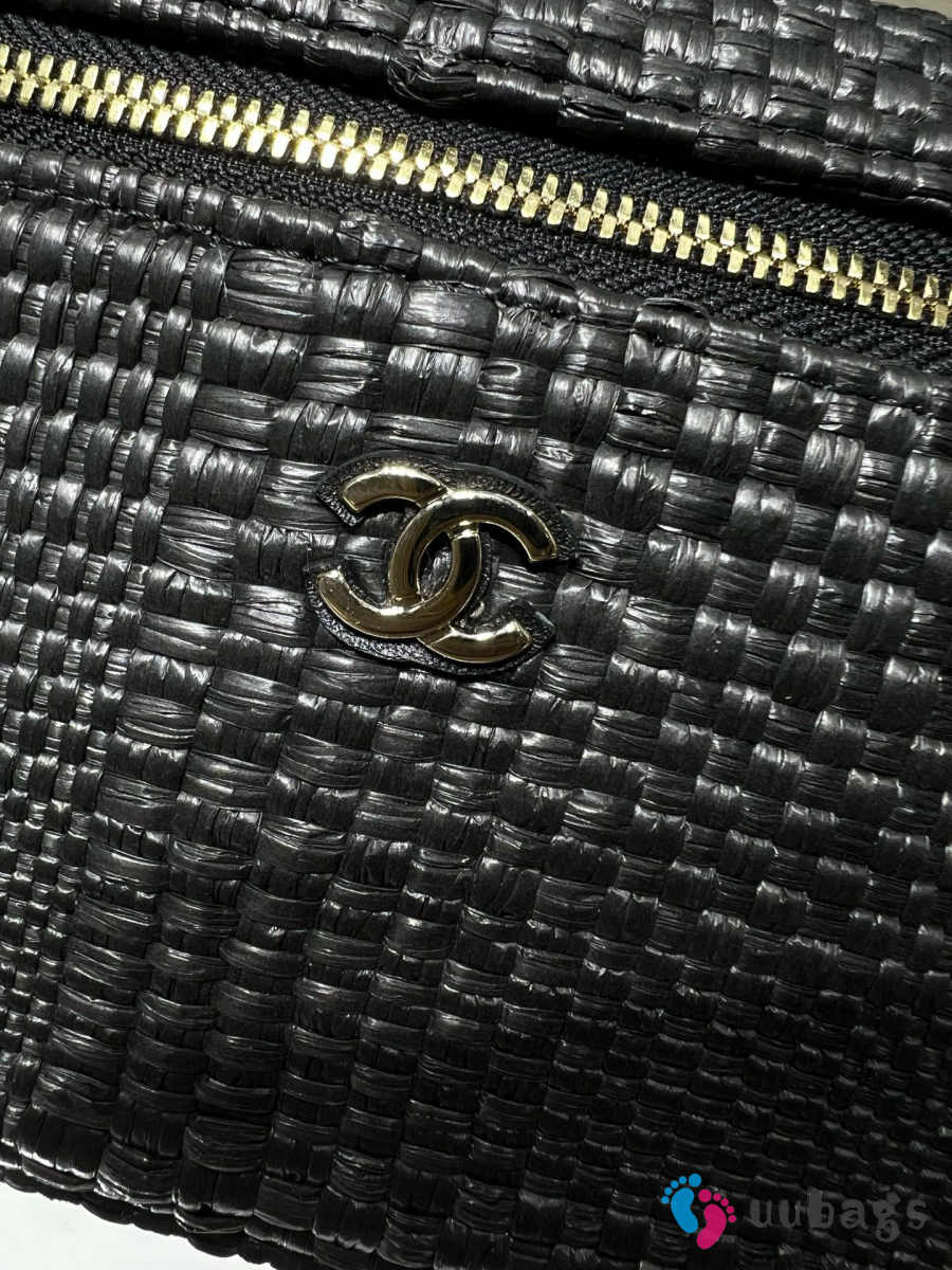 New Arrivals 2026 Chanel classic vanity bag with shoulder strap braided raffia yarn & gold-colored metal black 17x19.5x5cm