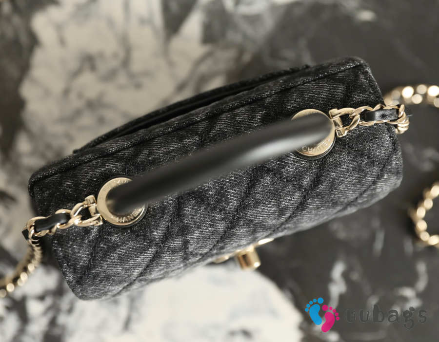 New Arrivals 2026 Chanel clutch with strap washed black denim, calfskin & gold-tone metal 11.5x14.5x5.5cm