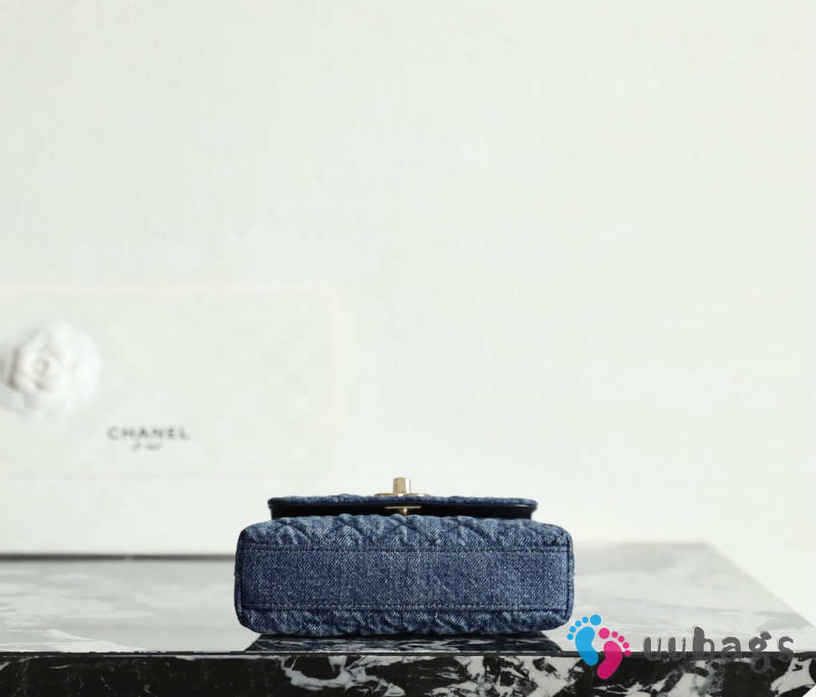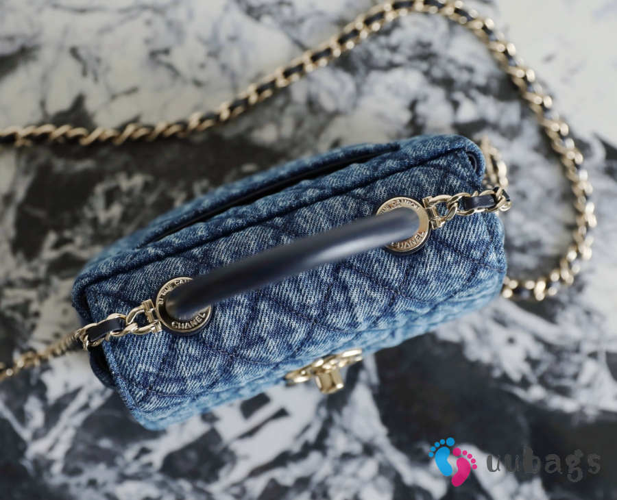 New Arrivals 2026 Chanel clutch with strap washed blue denim, calfskin & gold-tone metal 11.5x14.5x5.5cm