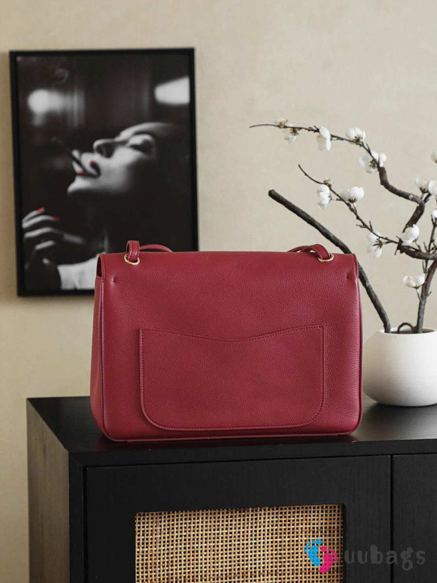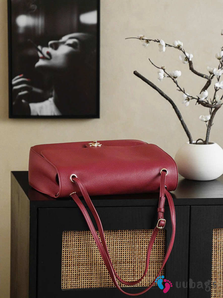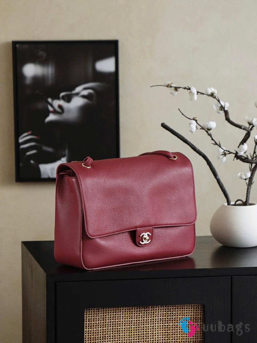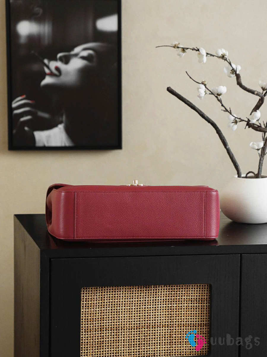 New Arrivals 2026 Chanel Large flap-top handbag with grained calfskin & silver-plated metal in dark red wine 26x38.5x11cm