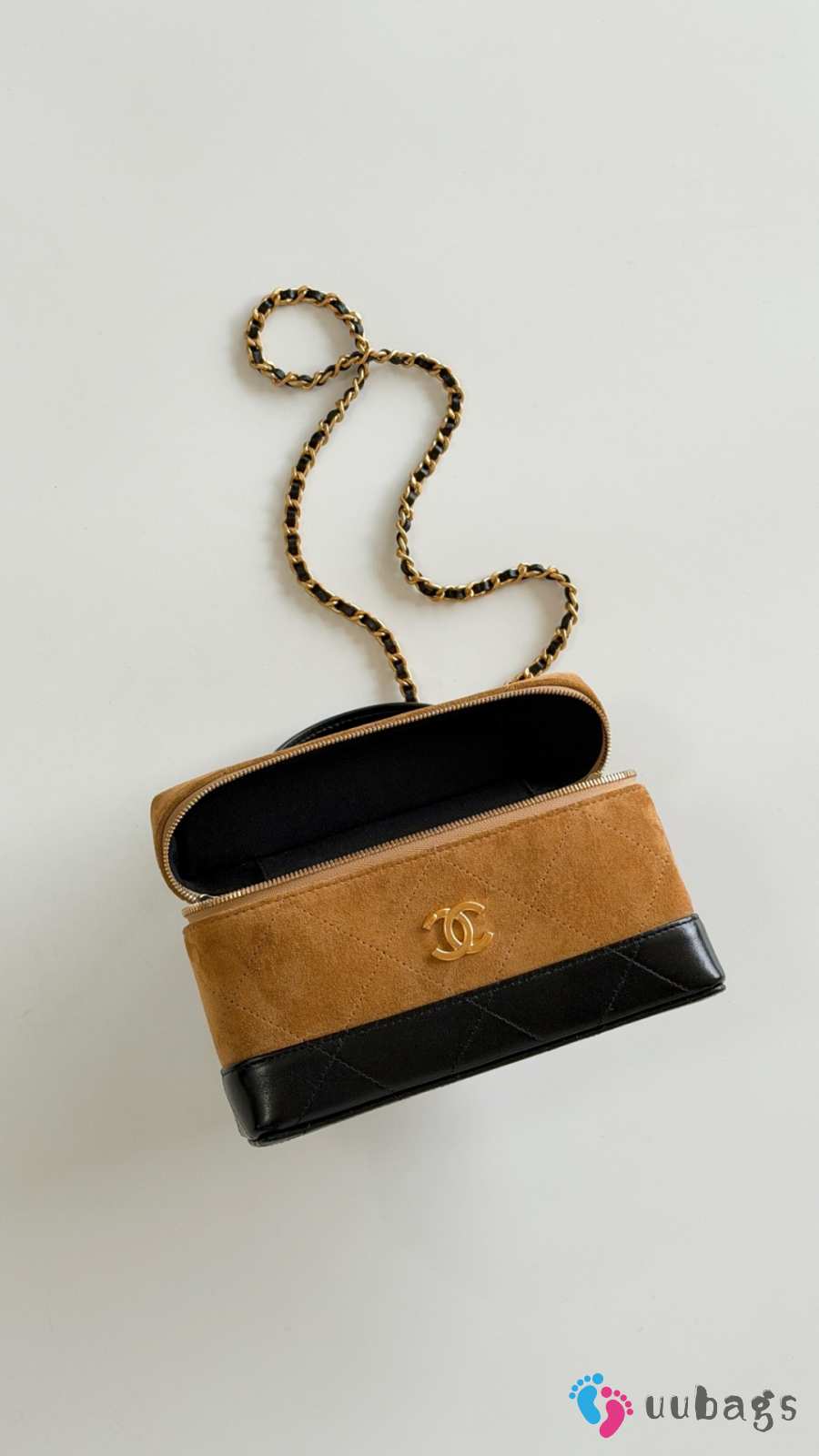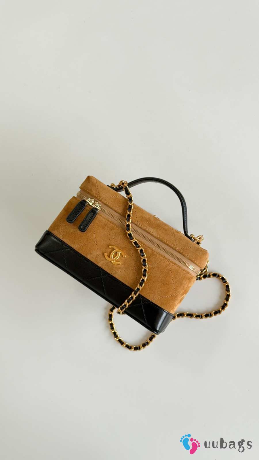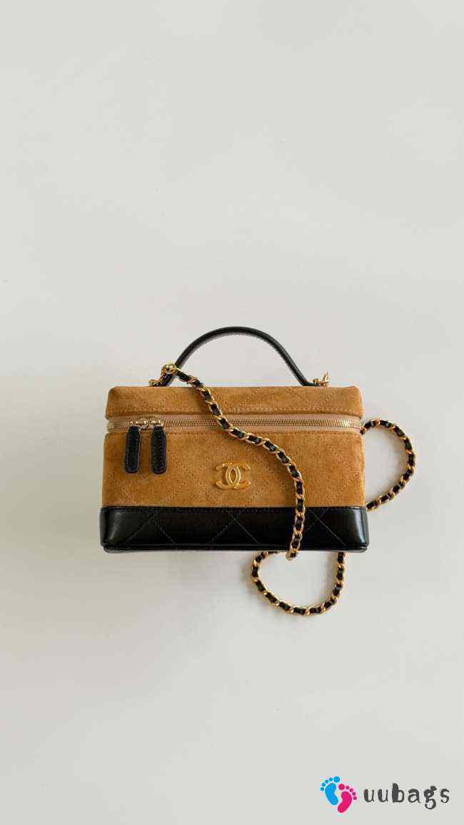New Arrivals 2026 Chanel Vanity with chain calf suede, glossy lambskin & gold-tone metal in brown & black 17x19.5x5cm