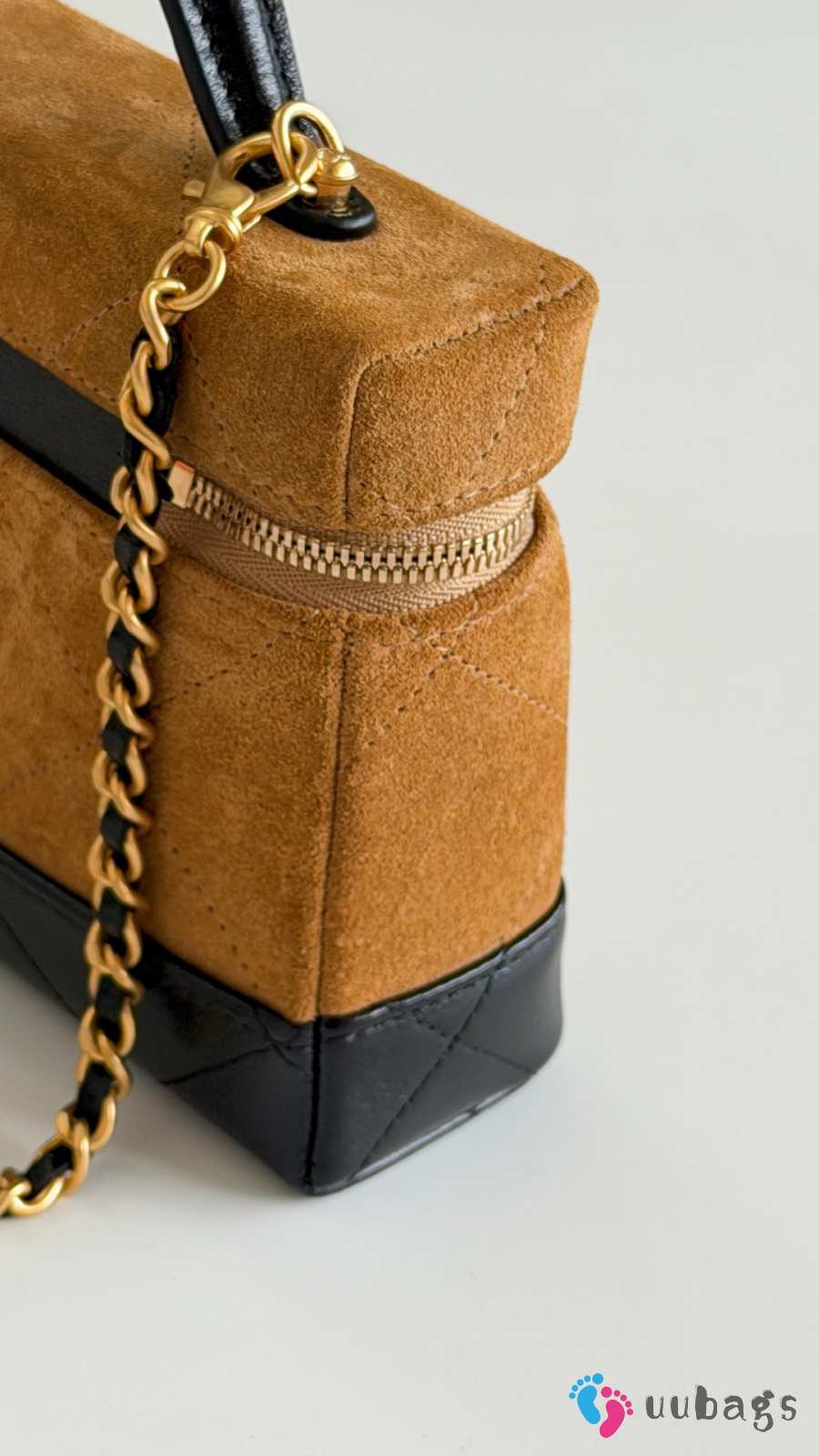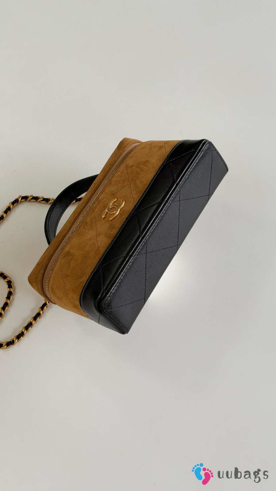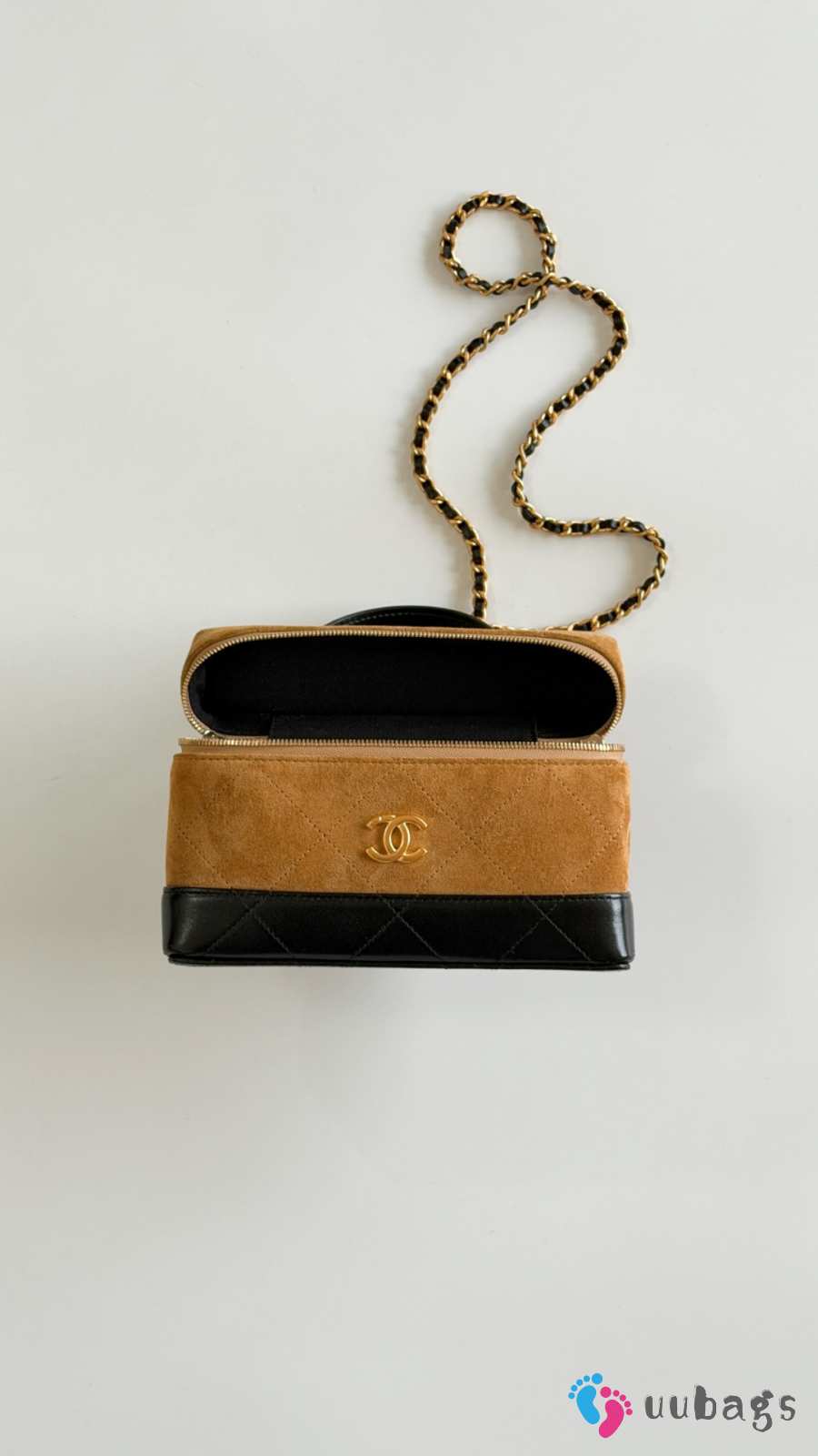 New Arrivals 2026 Chanel Vanity with chain calf suede, glossy lambskin & gold-tone metal in brown & black 17x19.5x5cm