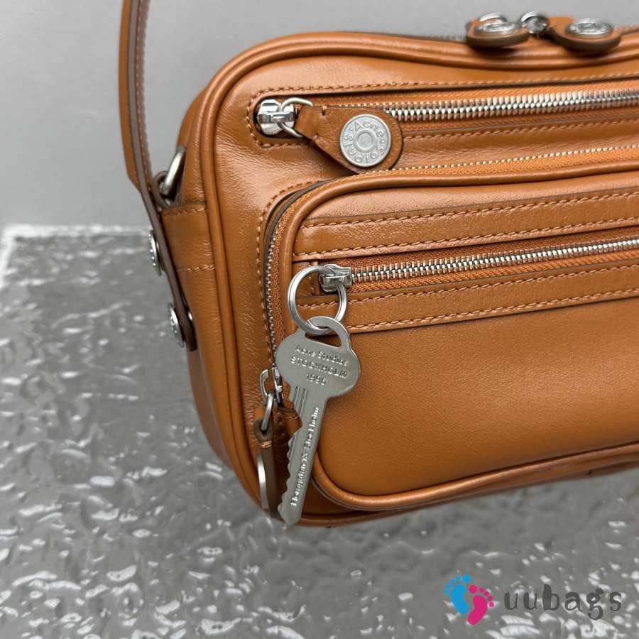 Uubags Acne Studios Camero party shoulder bag in cognac brown 26x16x7cm