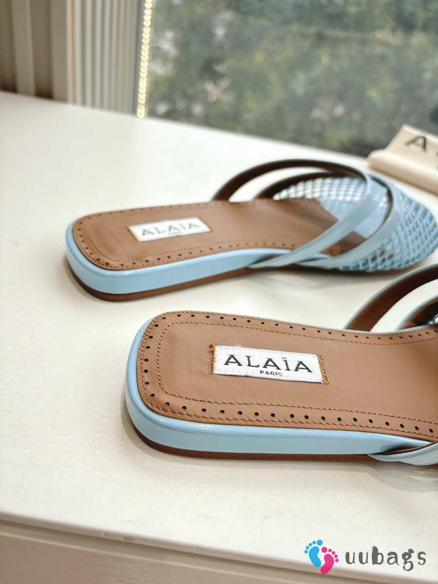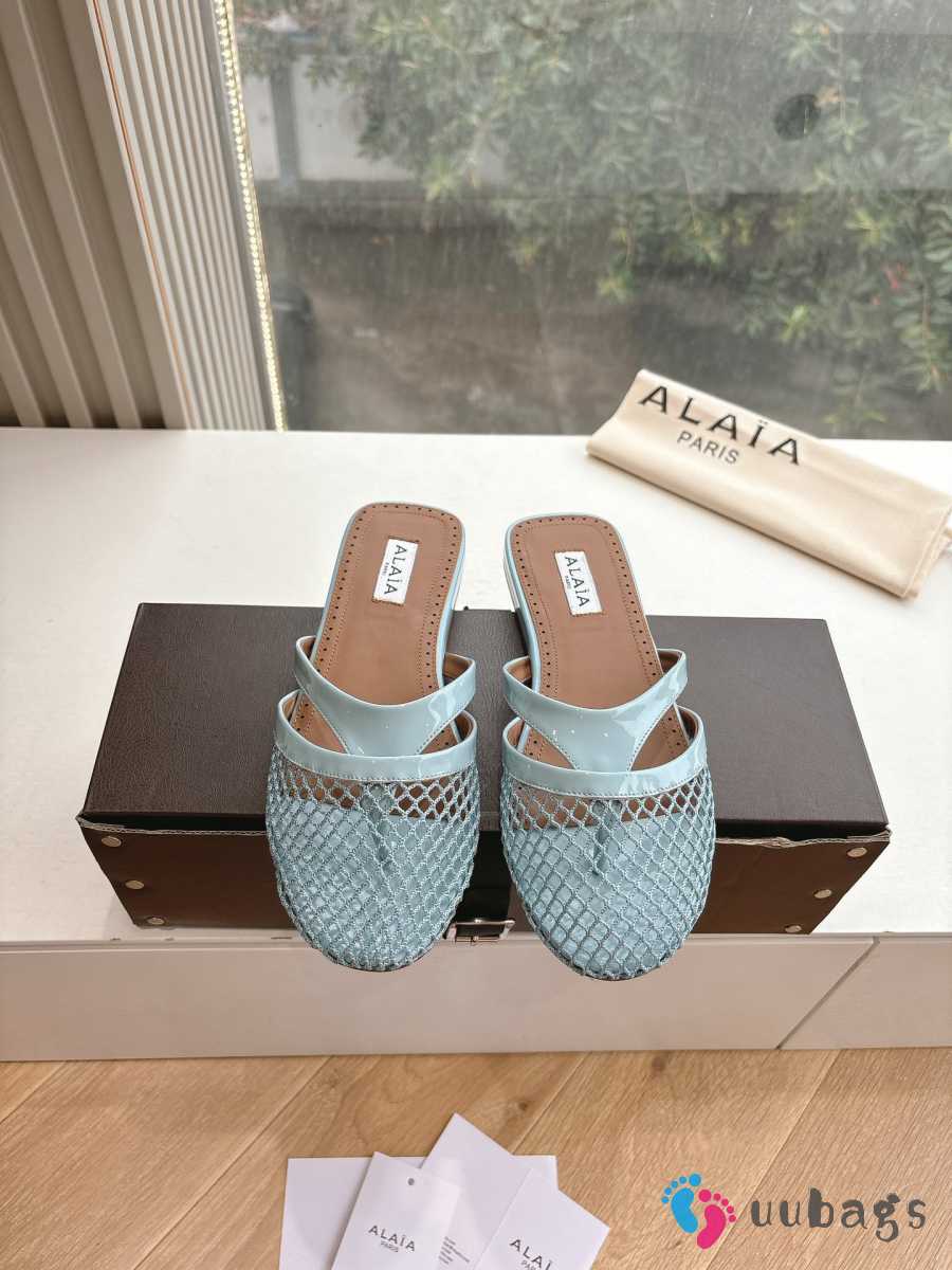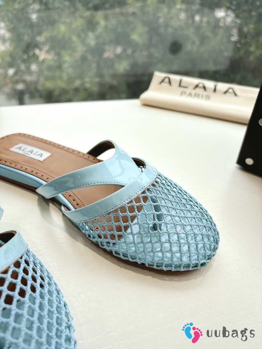 Uubags Alaïa Infradito Flat Mules In Fishnet And Leather Light Blue