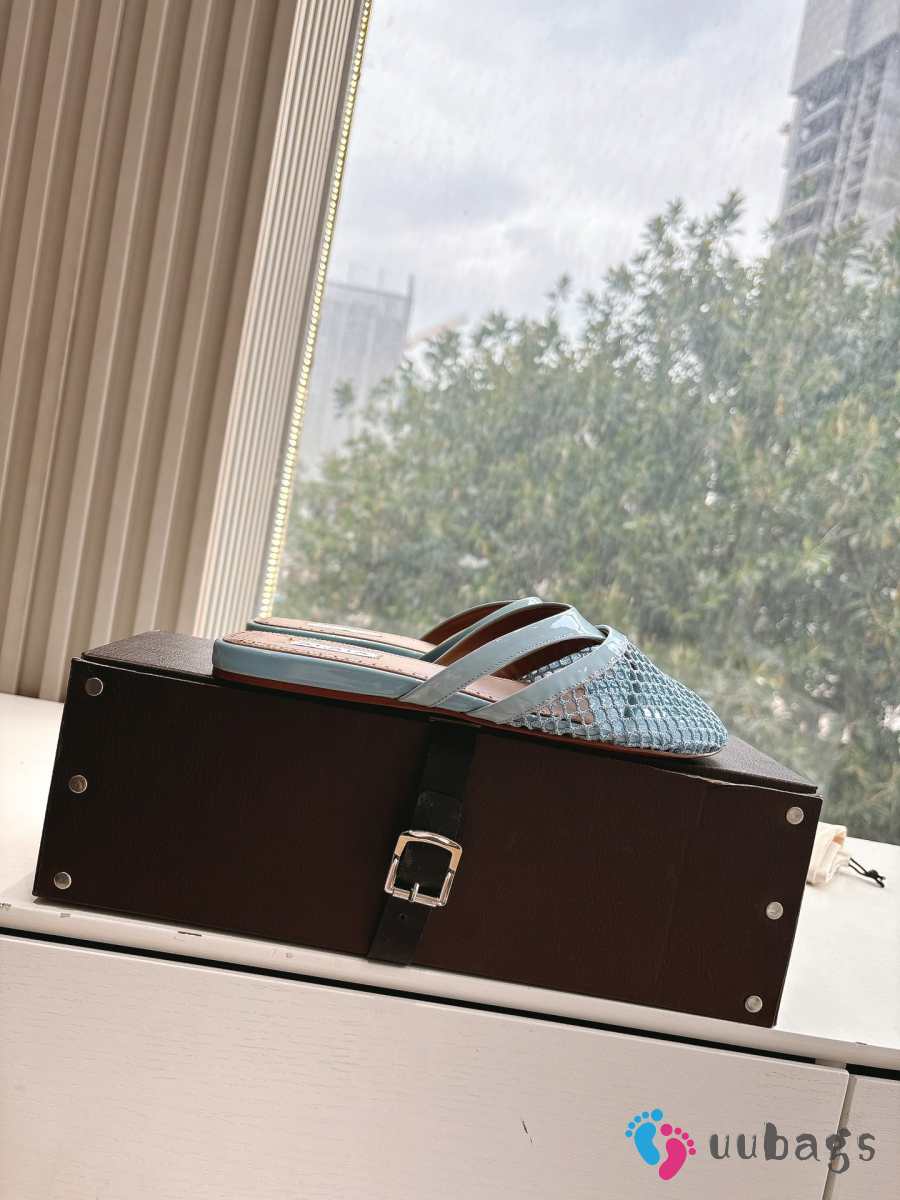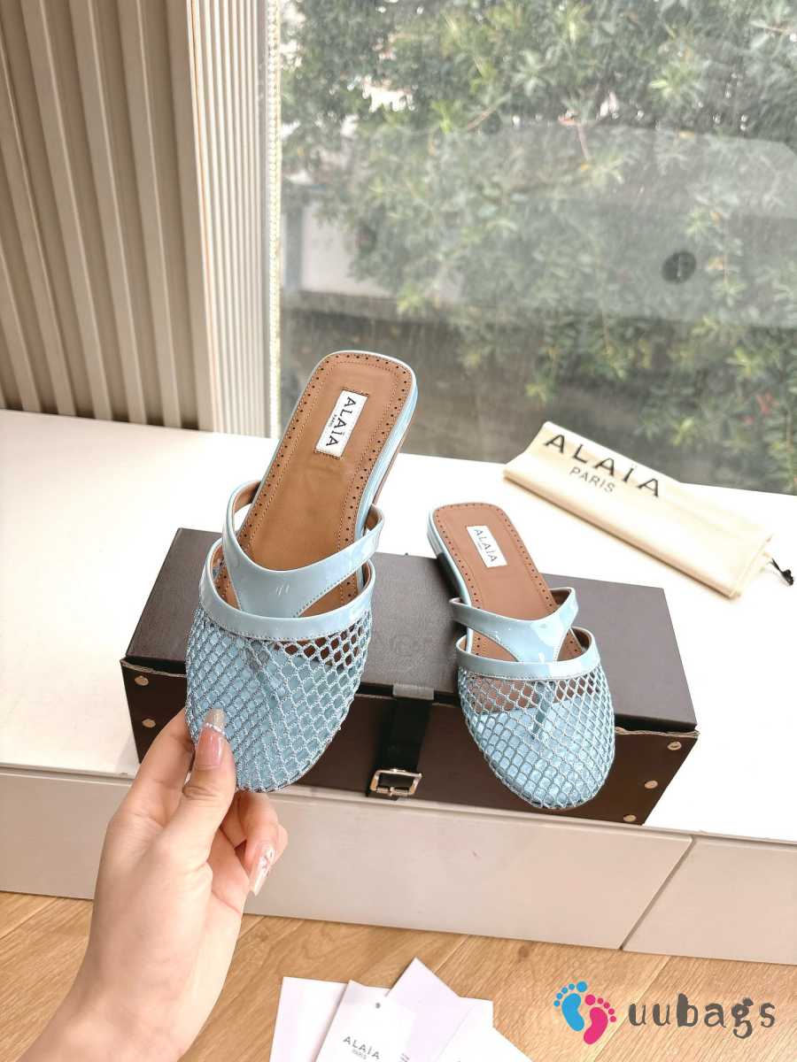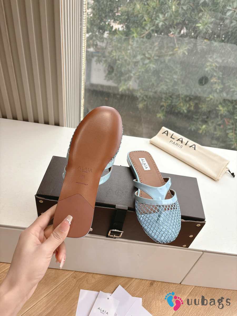 Uubags Alaïa Infradito Flat Mules In Fishnet And Leather Light Blue