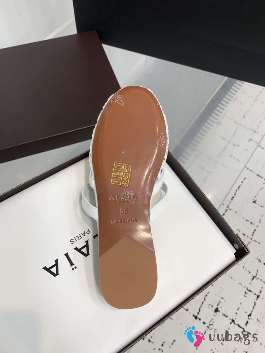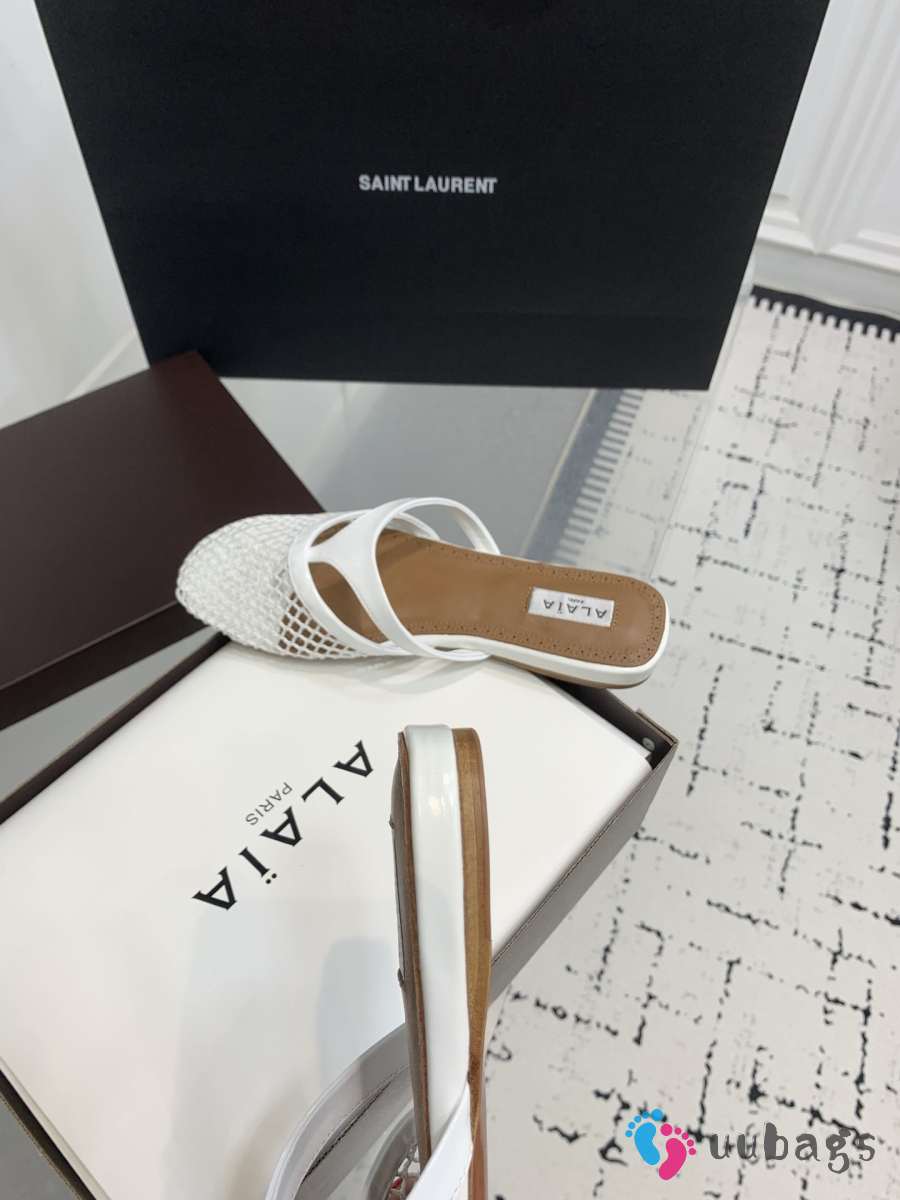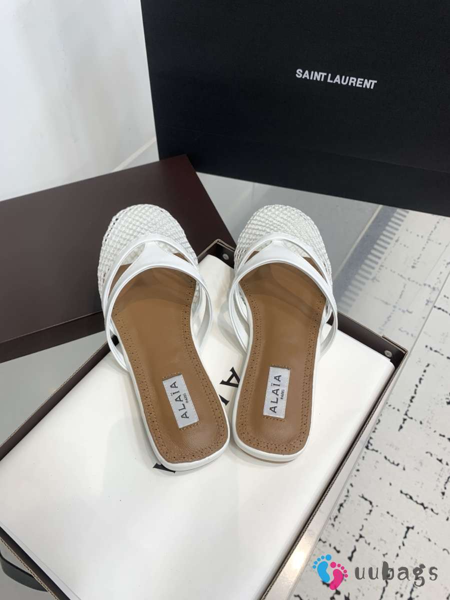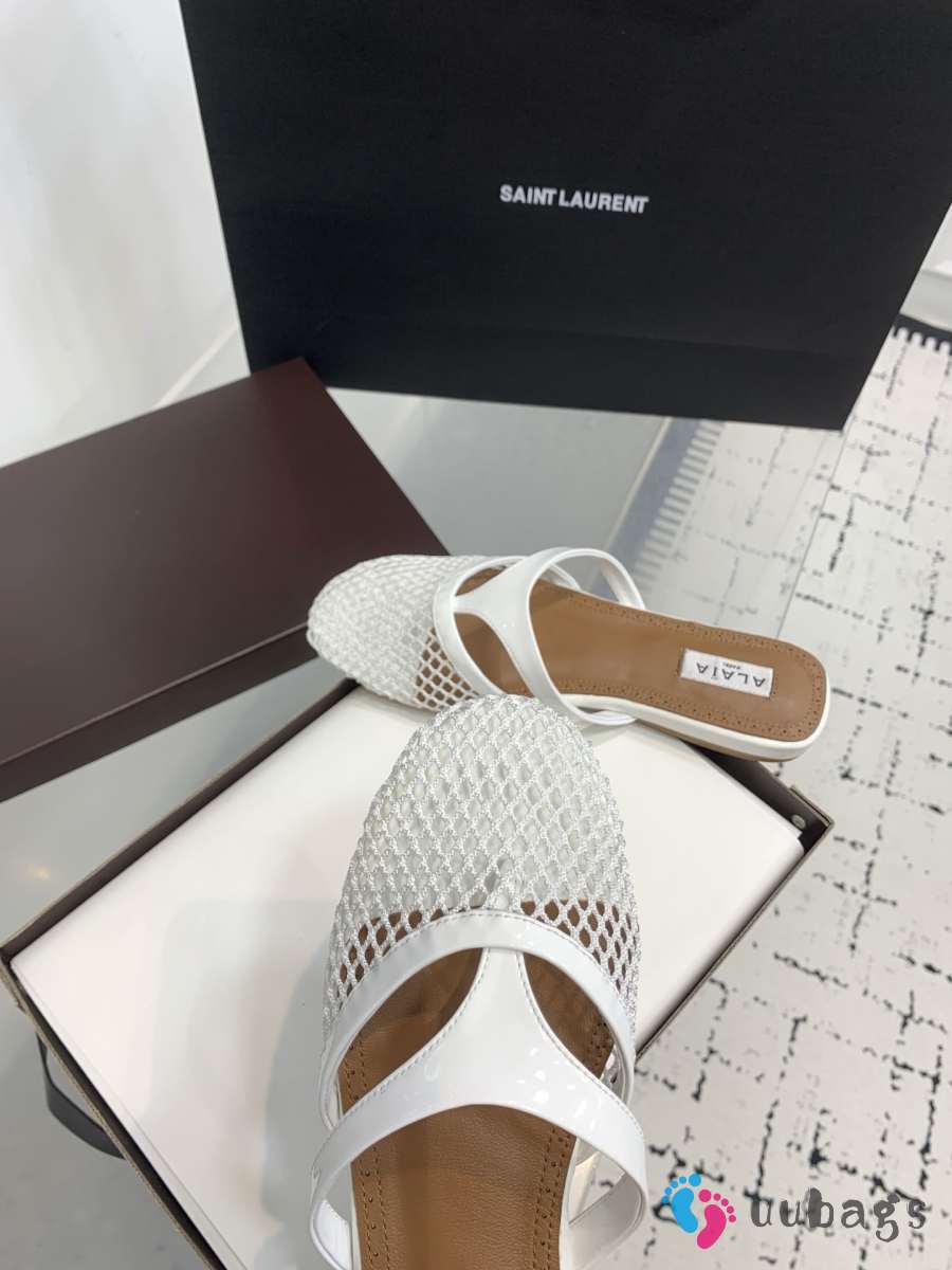 Uubags Alaïa Infradito Flat Mules In Fishnet And Leather White