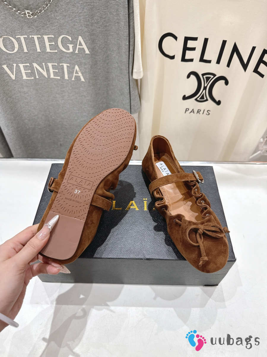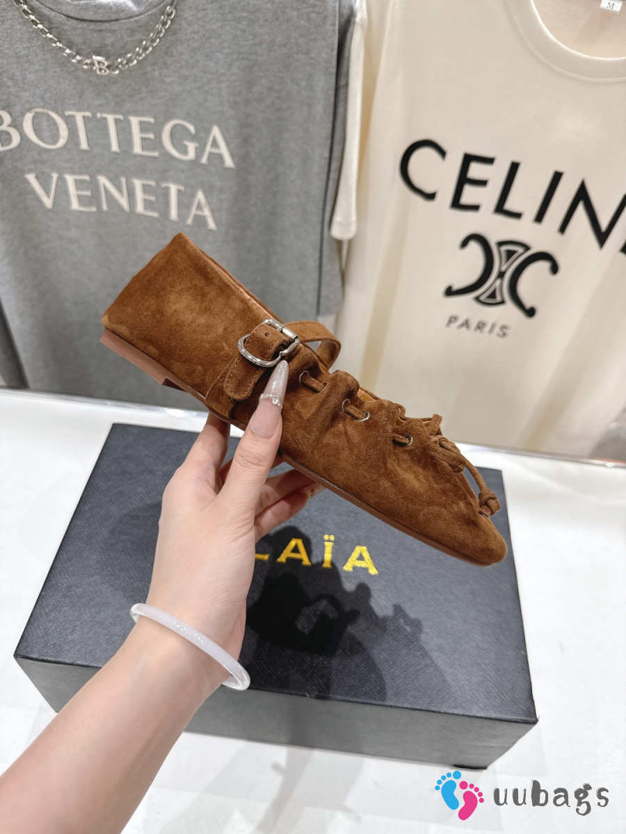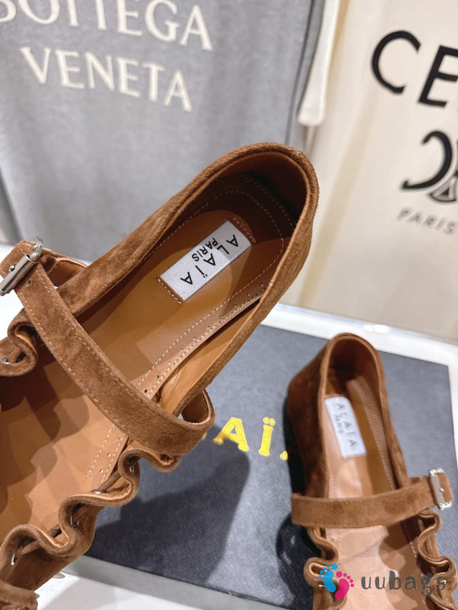 Uubags Alaïa Lace-Up Ballet Flats In Brown Suede