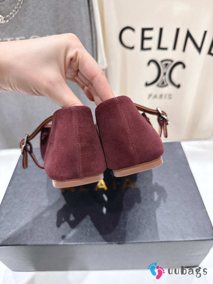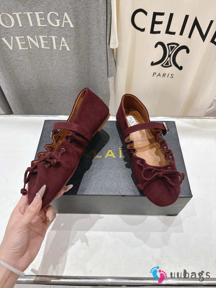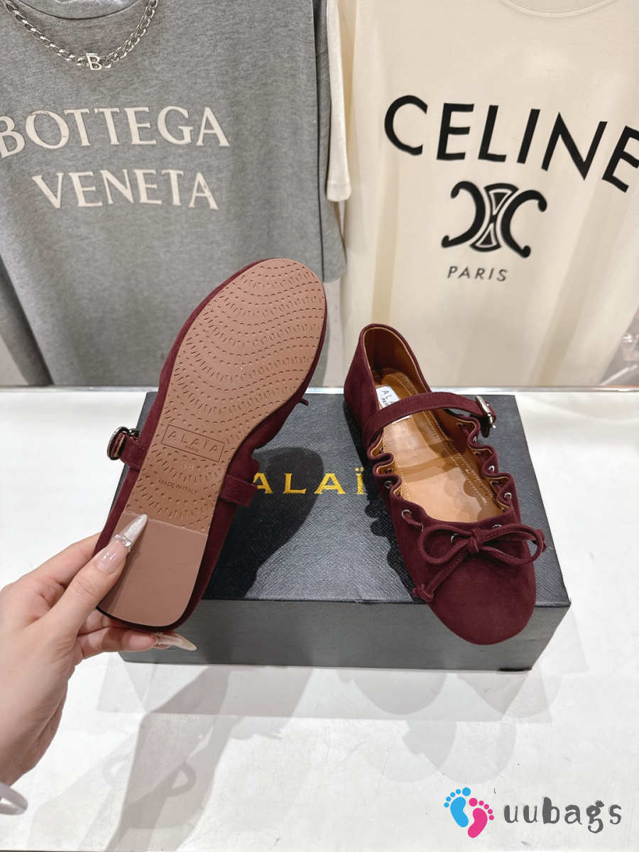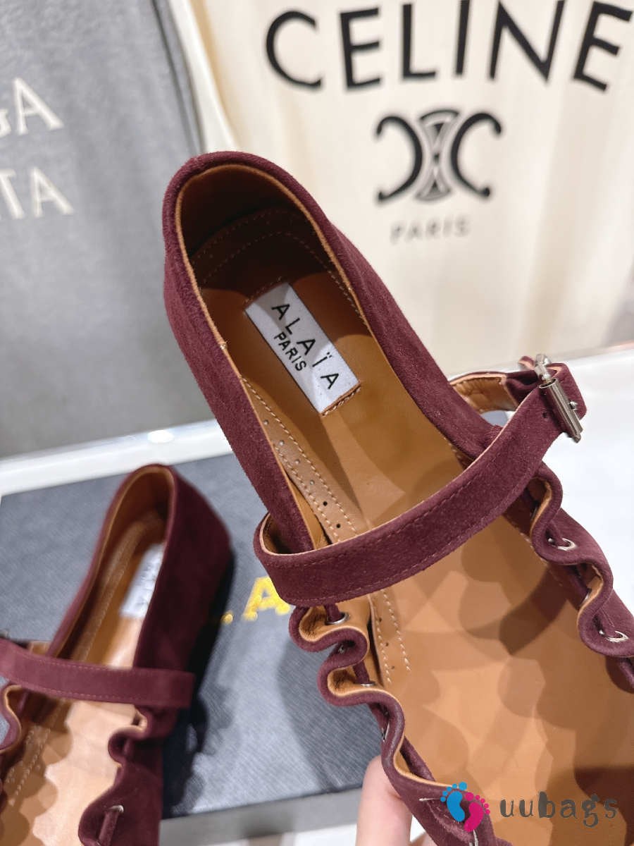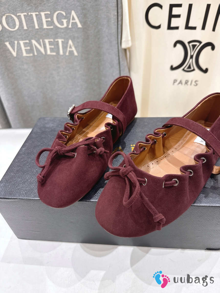 Uubags Alaïa Lace-Up Ballet Flats In Burgundy Suede