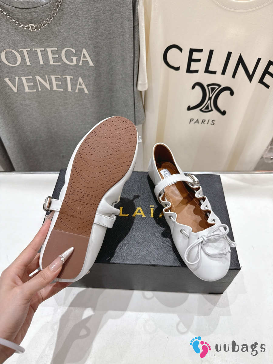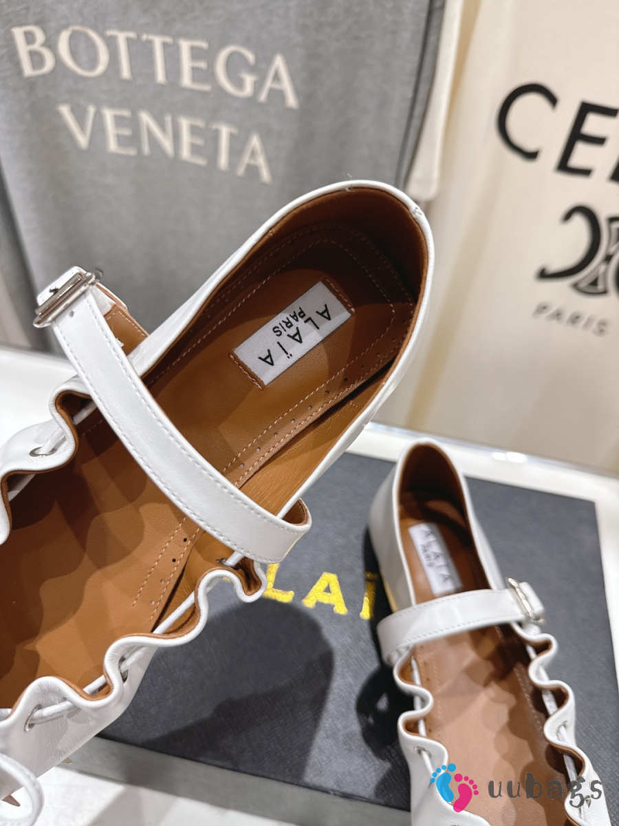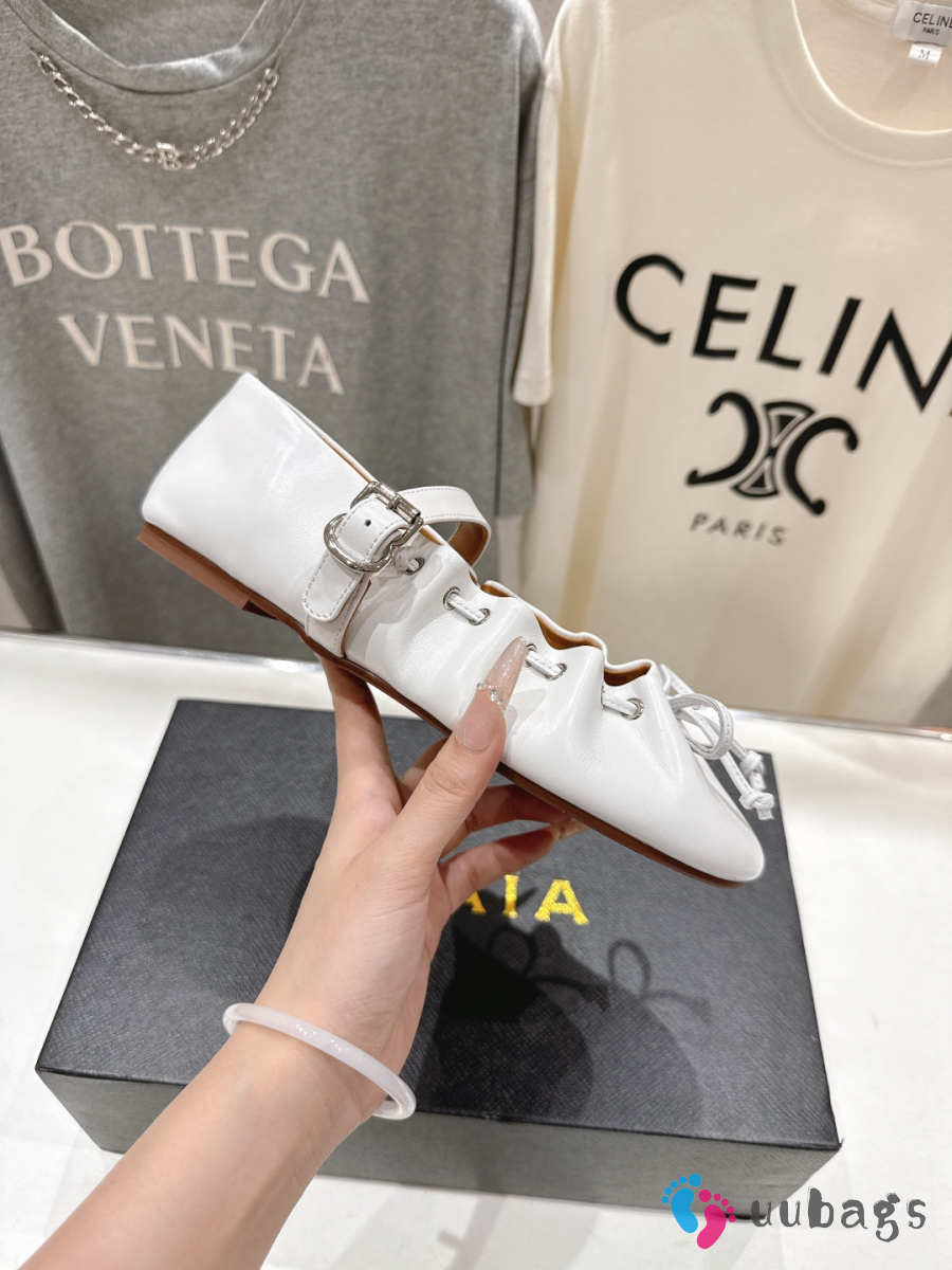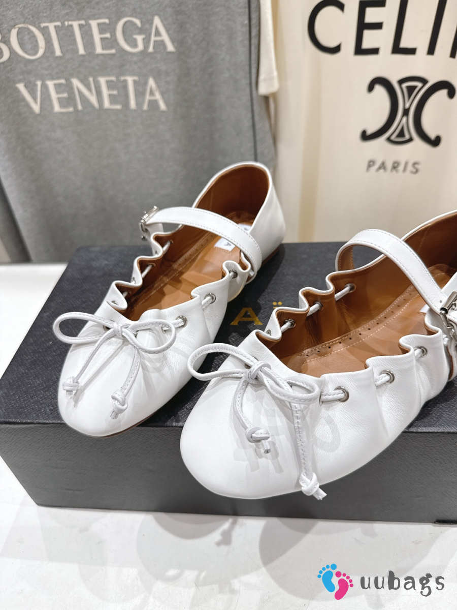 Uubags Alaïa Lace-Up Ballet Flats In White Calfskin