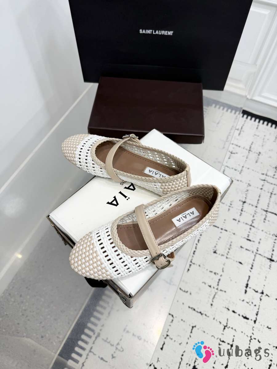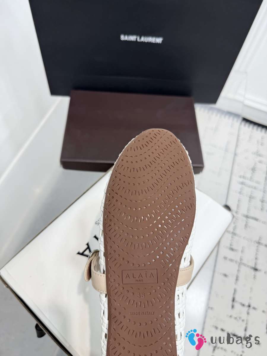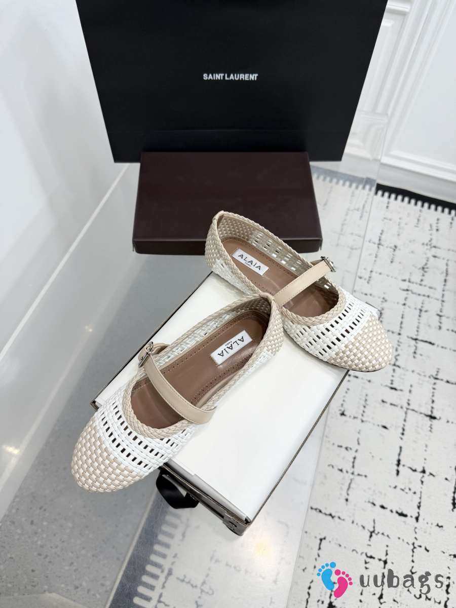 Uubags Alaïa Woven Leather Mary Jane Flats In White/ Light Beige