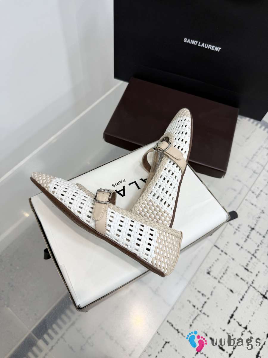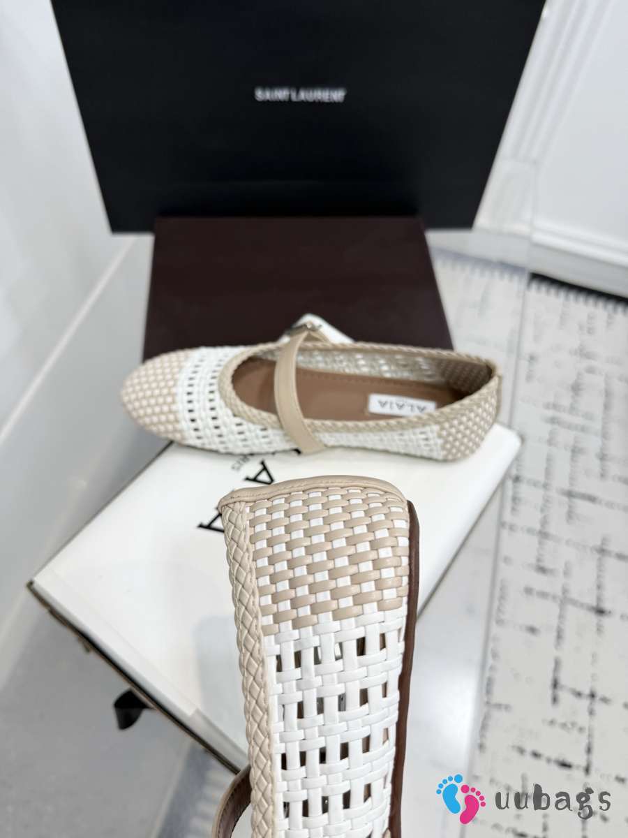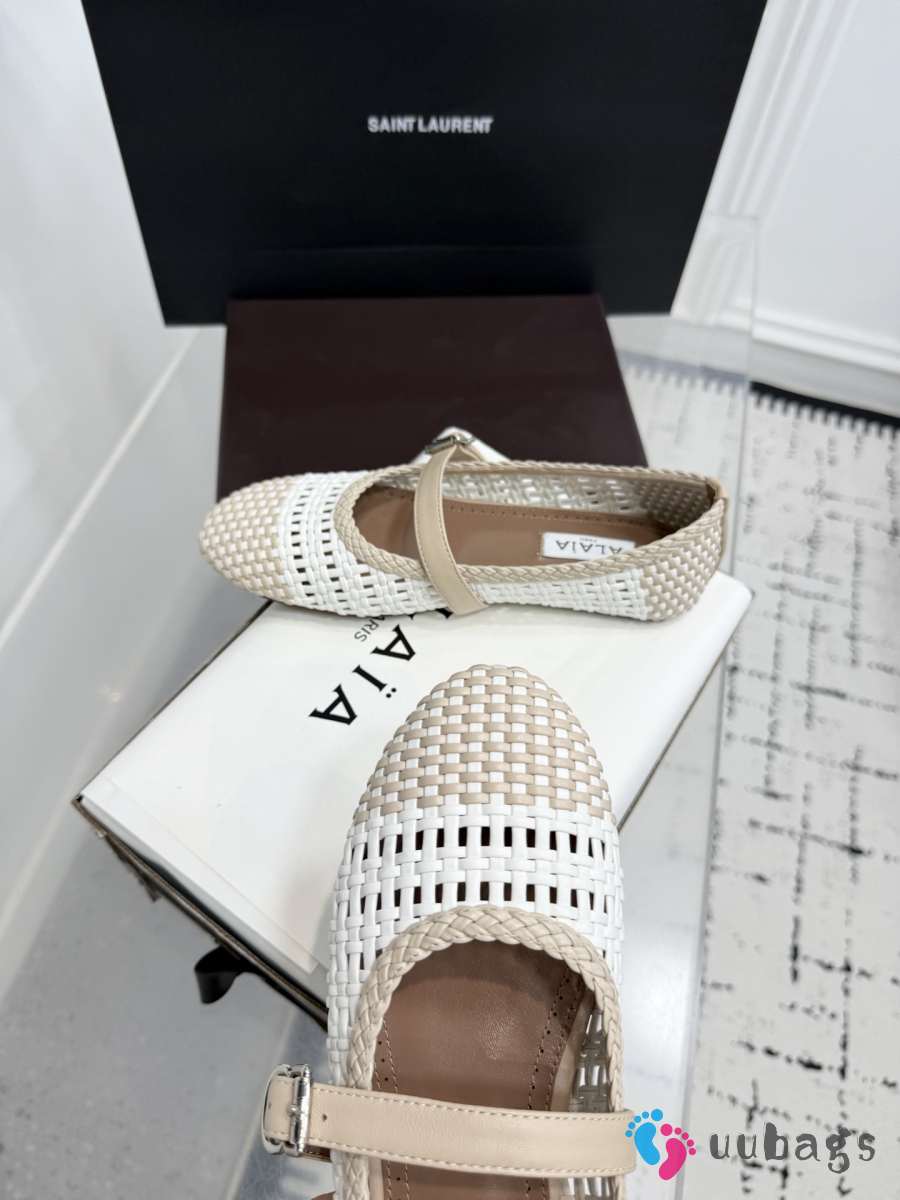 Uubags Alaïa Woven Leather Mary Jane Flats In White/ Light Beige
