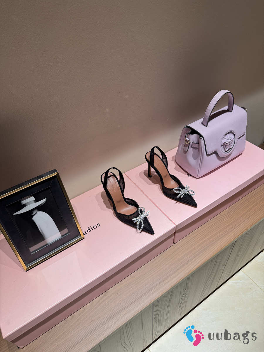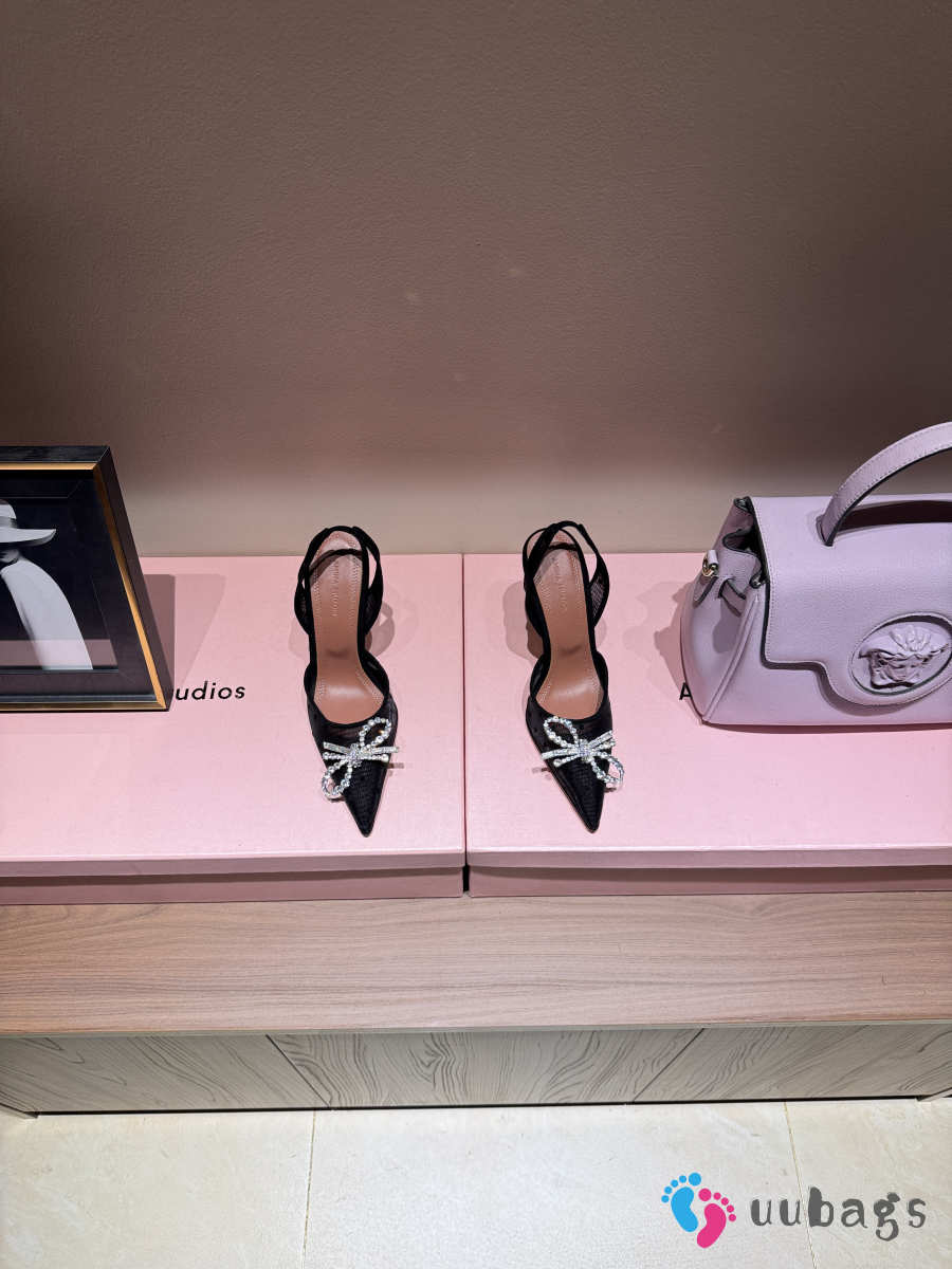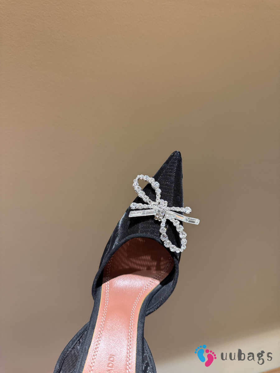 Uubags Amina Muaddi Gilda Crystal Bow Polka-Dot Mesh Slingback Pumps In Black 10cm
