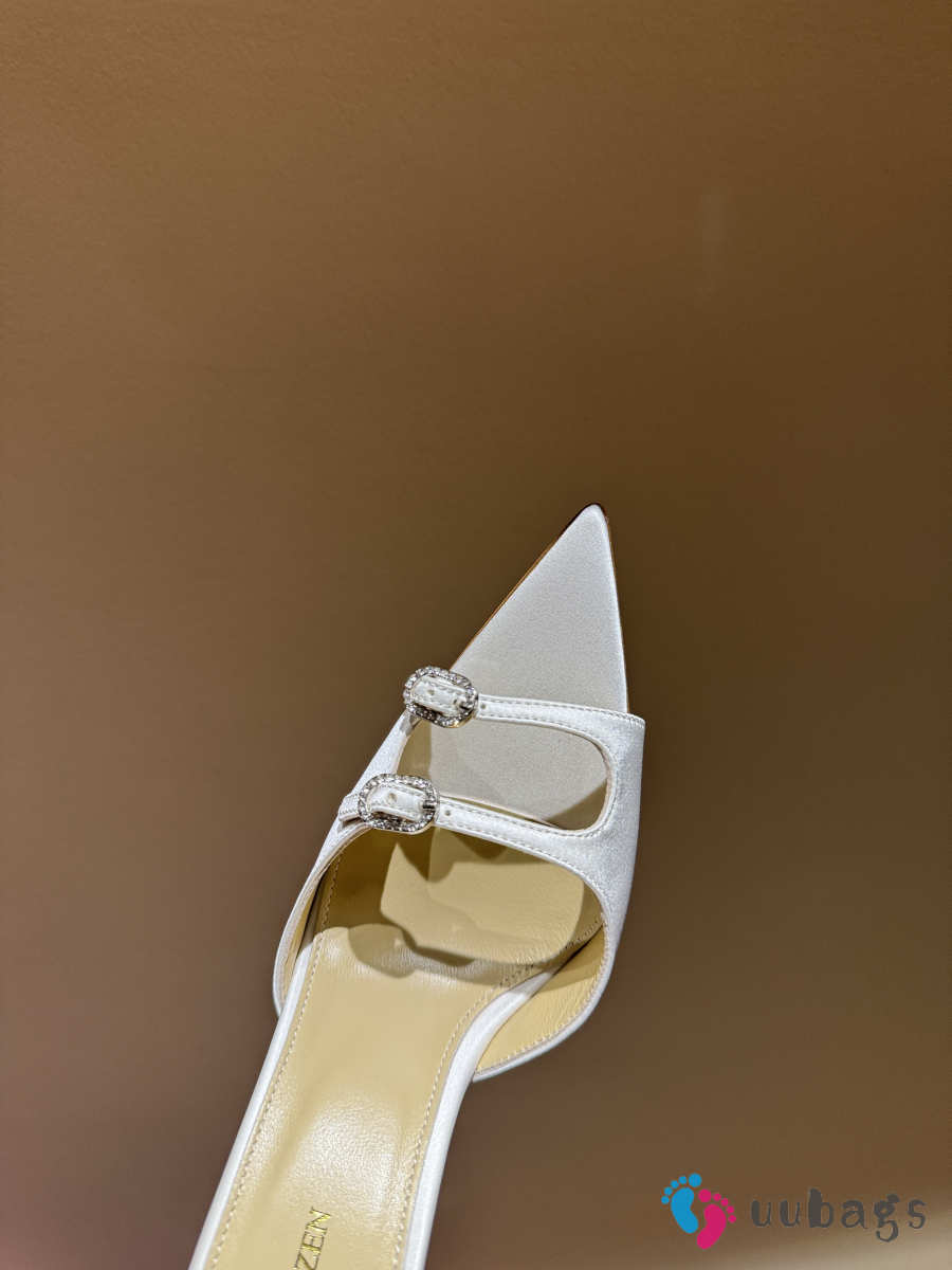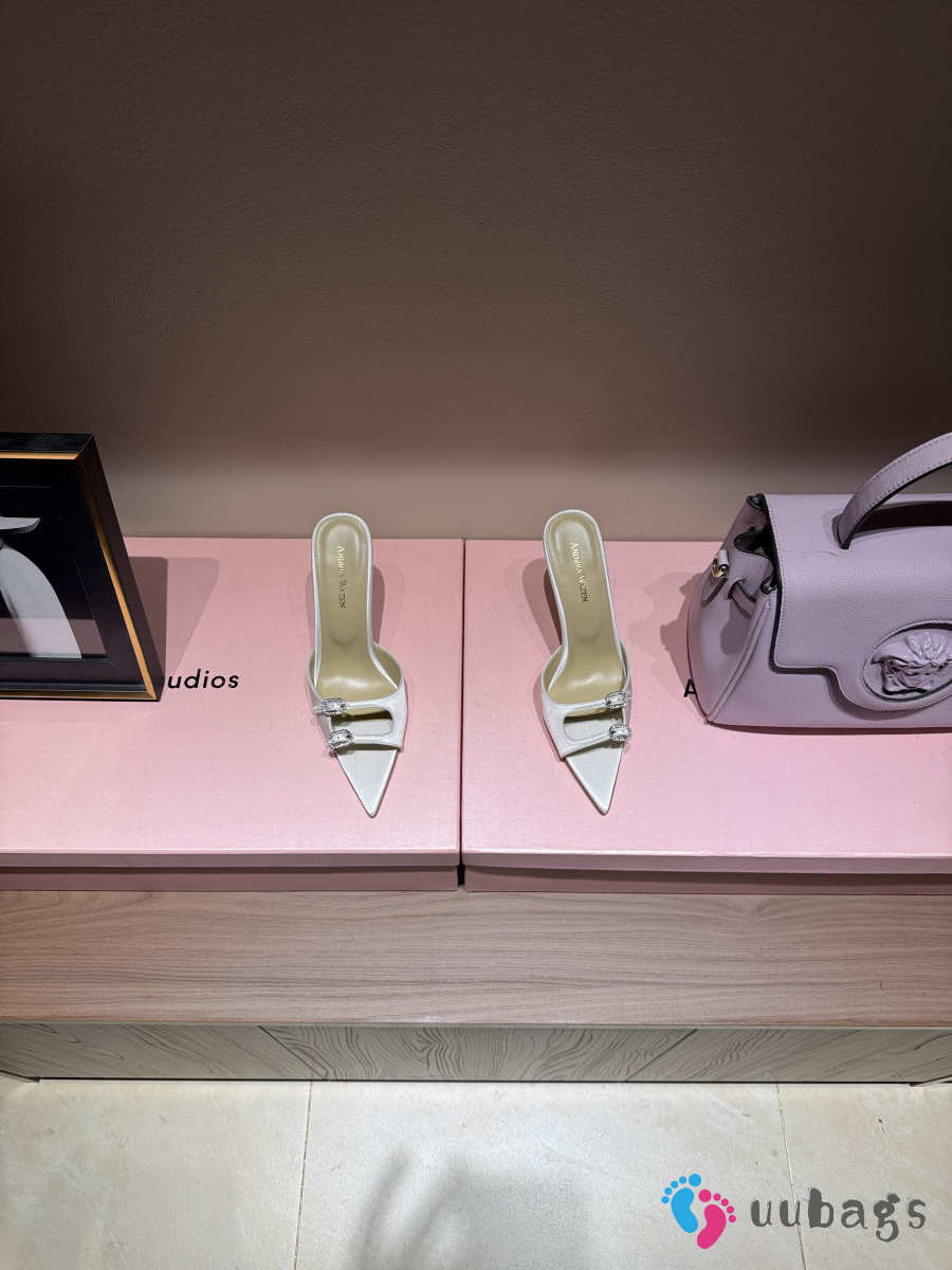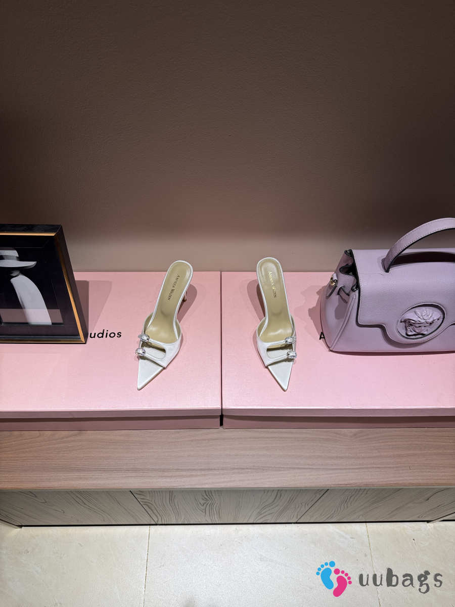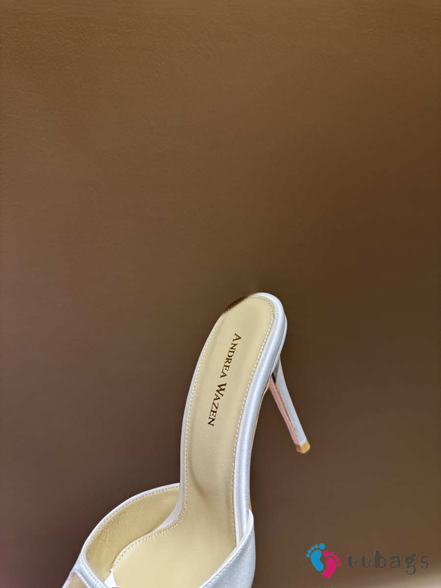 Uubags Andrea Wazen Franca Glitz Mules in white satin