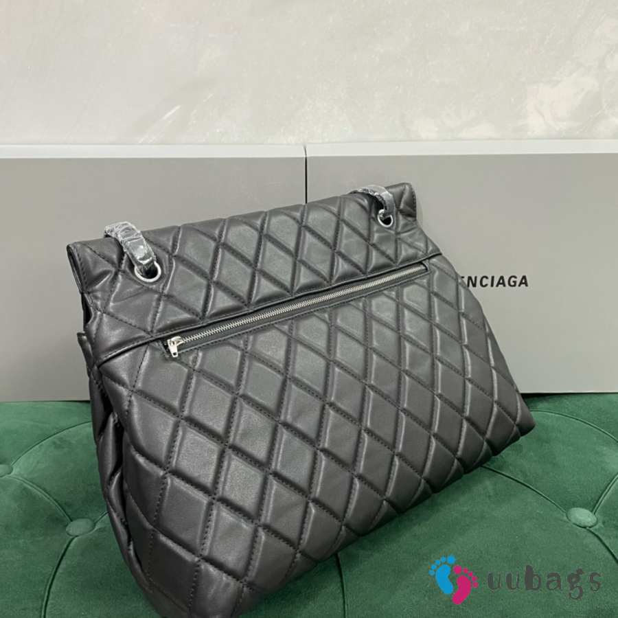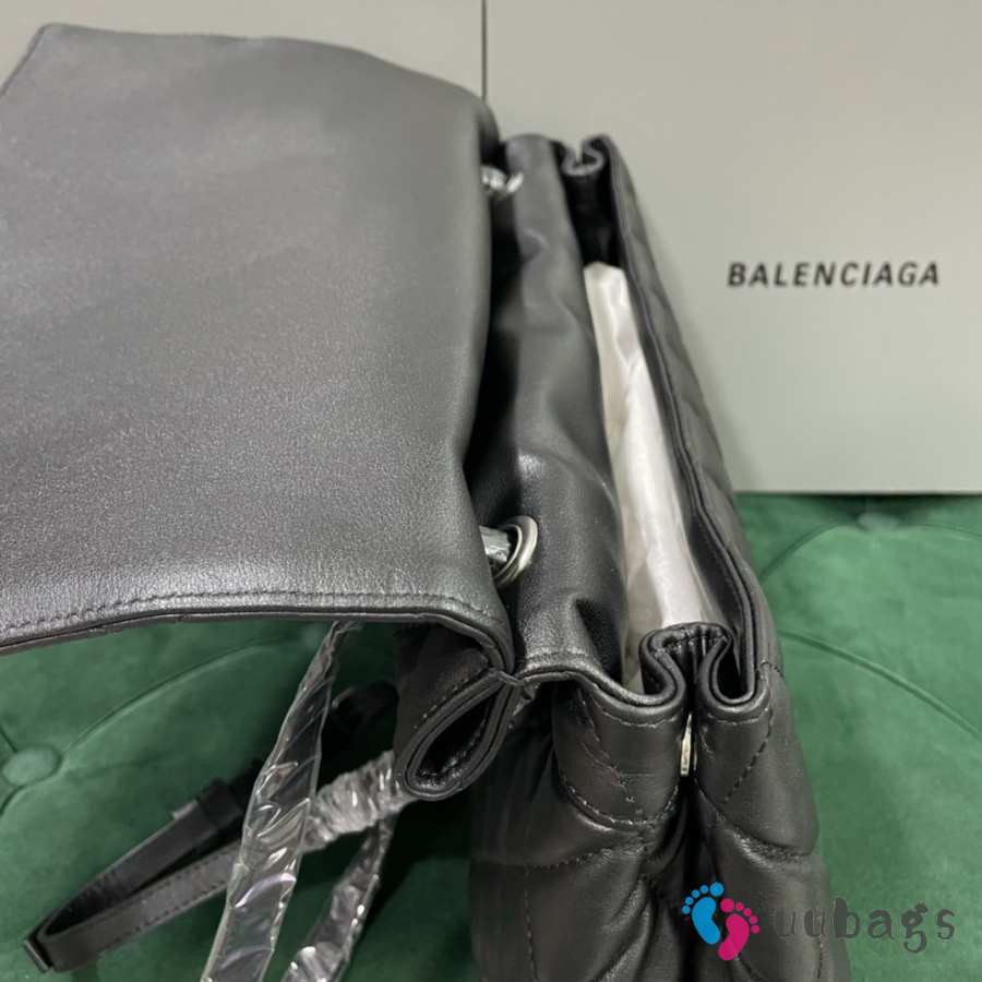 Uubags Balenciaga Crush Large Flap Bag in Black Quilted Calfskin with B Logo 36x10x30cm