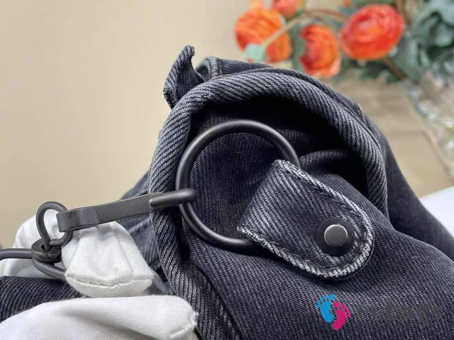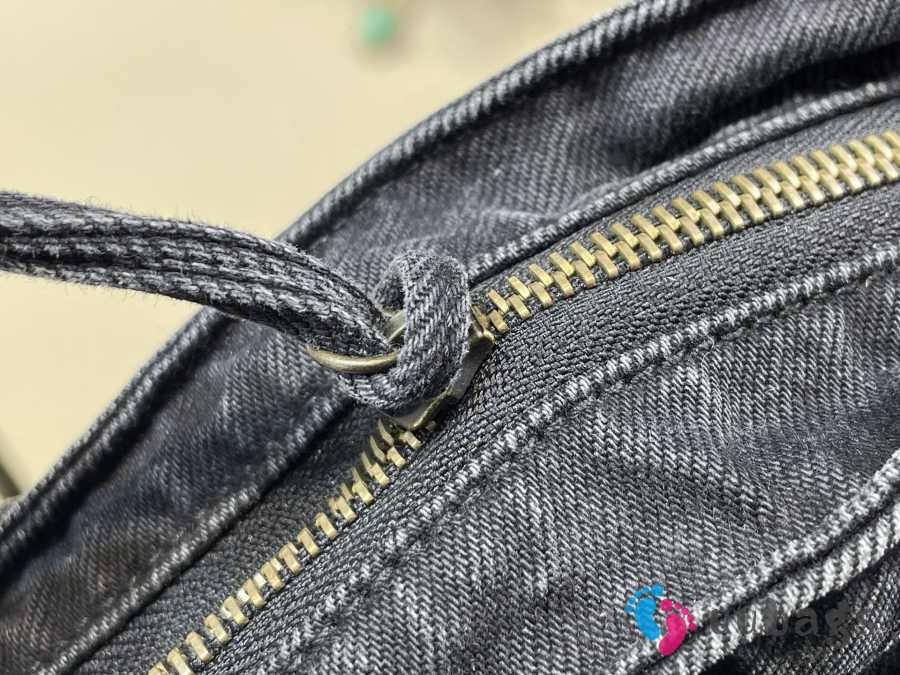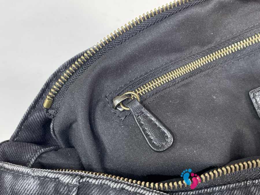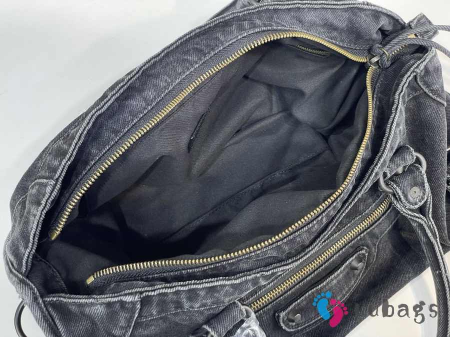 Uubags Balenciaga Large Le City Black Denim Bag with Aged Silver Hardware 35cm
