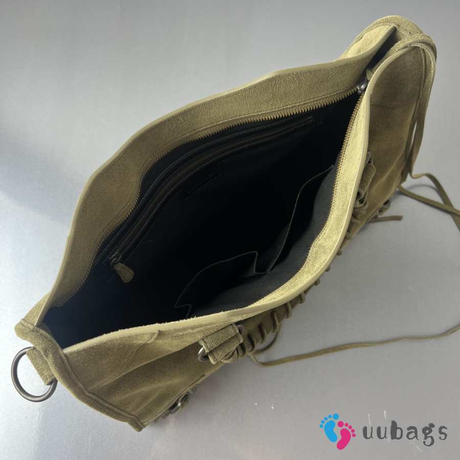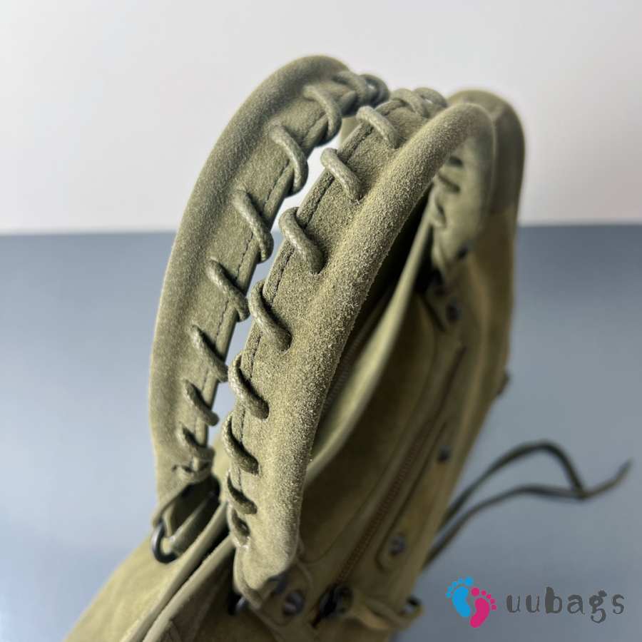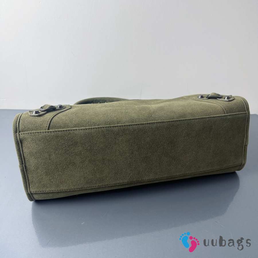 Uubags Balenciaga Le City bag large in green waxed suede calfskin, brass hardware
