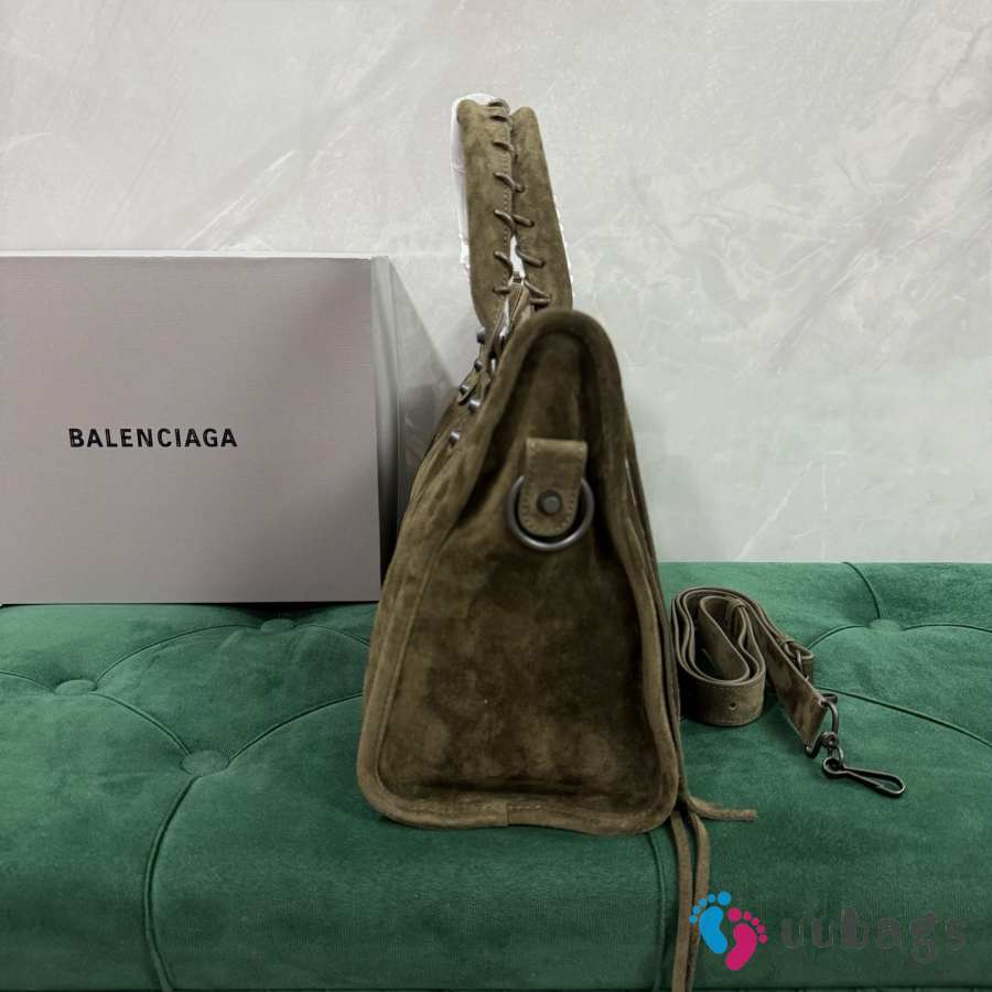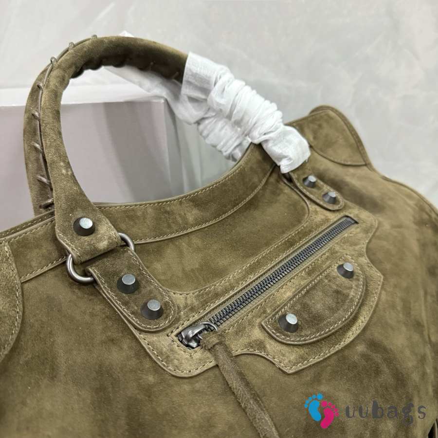 Uubags Balenciaga Le City bag medium in khaki suede calfskin, brass hardware 38x26x24cm