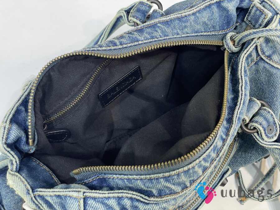 Uubags Balenciaga Le City Blue Denim Bag with Aged Silver Hardware 30cm