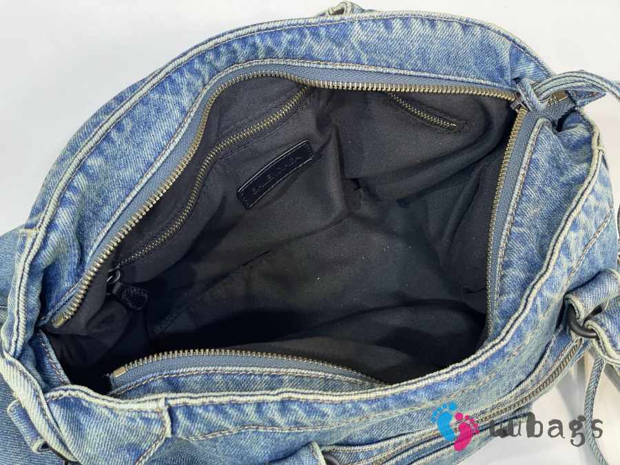 Uubags Balenciaga Le City Large Blue Denim Bag with Aged Silver Hardware 35cm