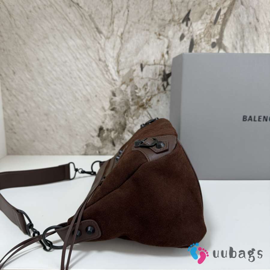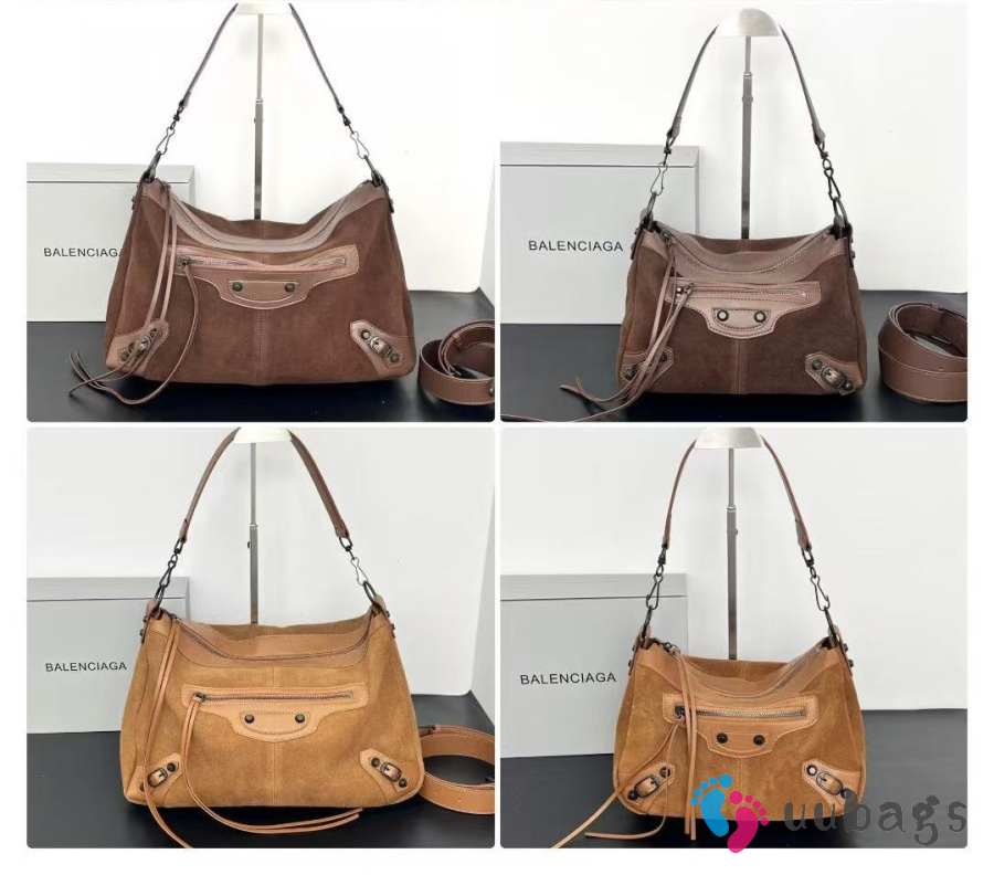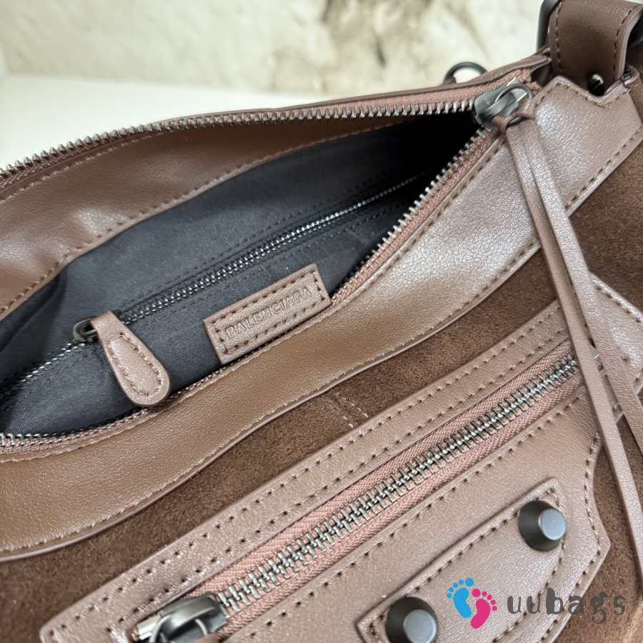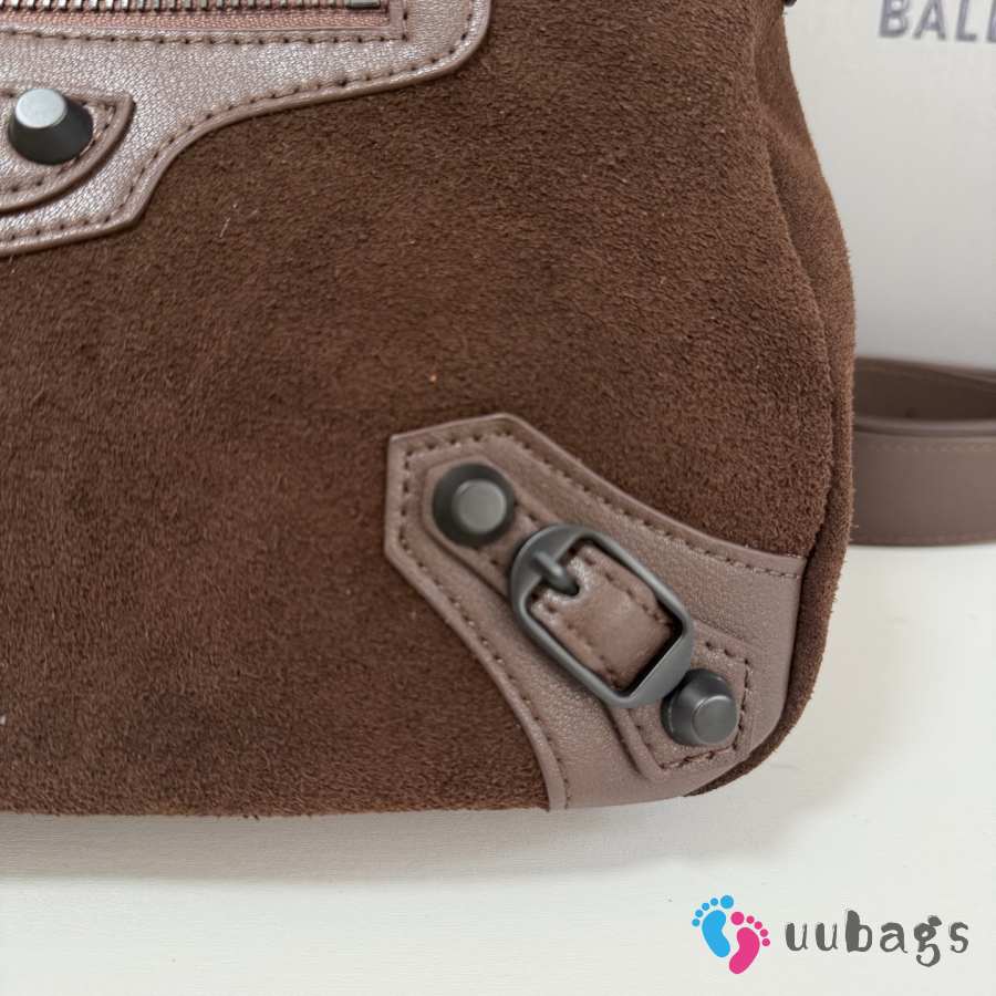 Uubags Balenciaga Le City Moto Bag in Dark Brown Suede Leather 27.9x19x13.9cm