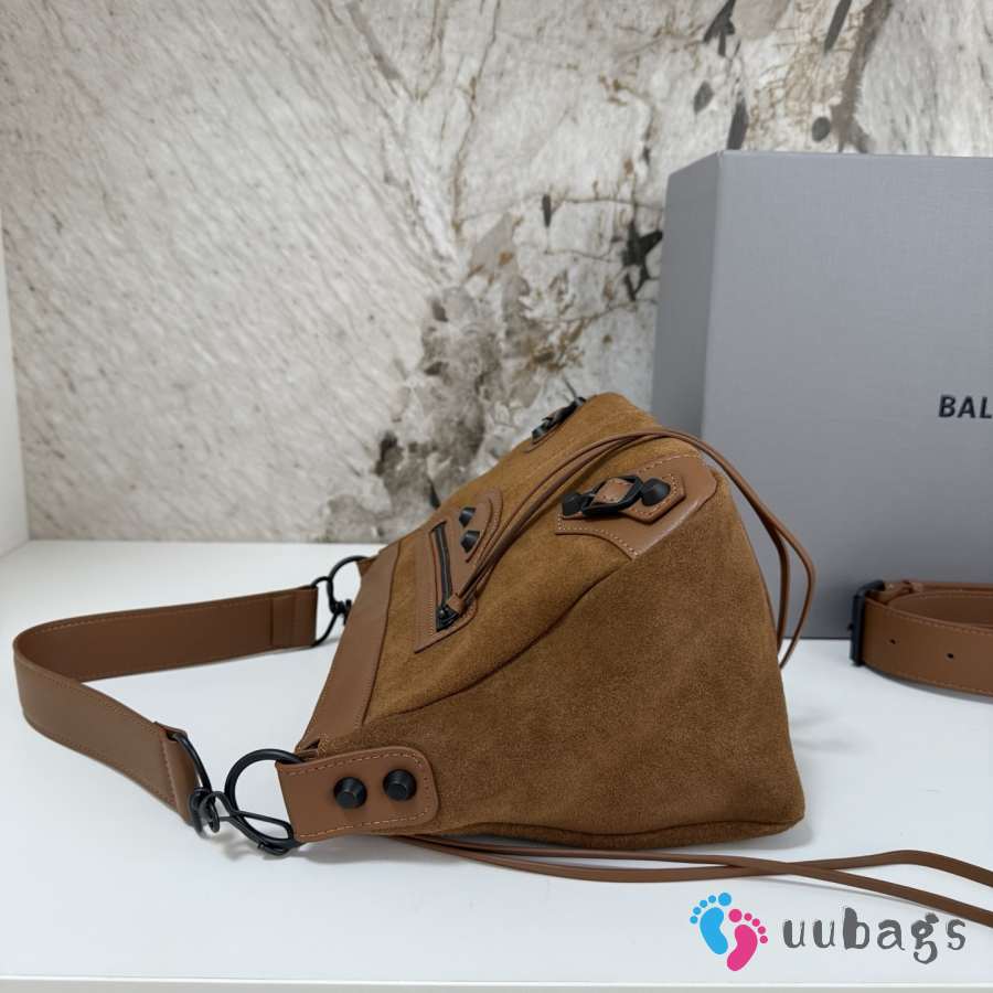 Uubags Balenciaga Le City Moto Bag in Tan Suede Leather 27.9x19x13.9cm