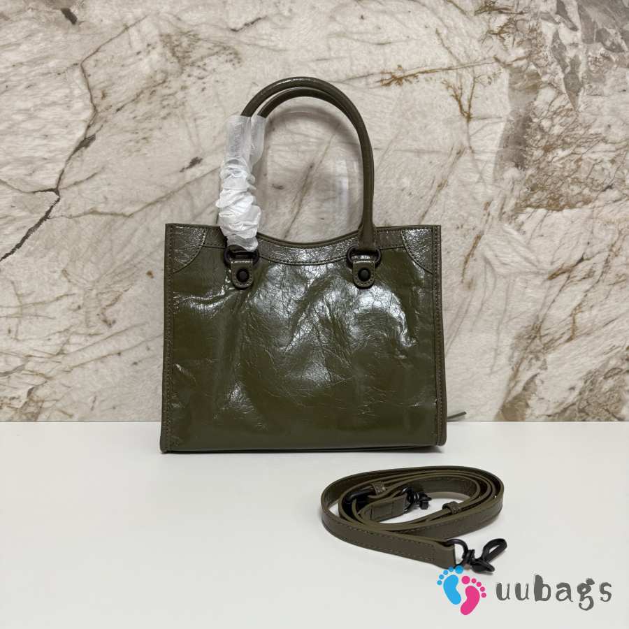 Uubags Balenciaga Le City Tote Bag Mini In Khaki Arena Lambskin, Brass Hardware 26x21x8cm