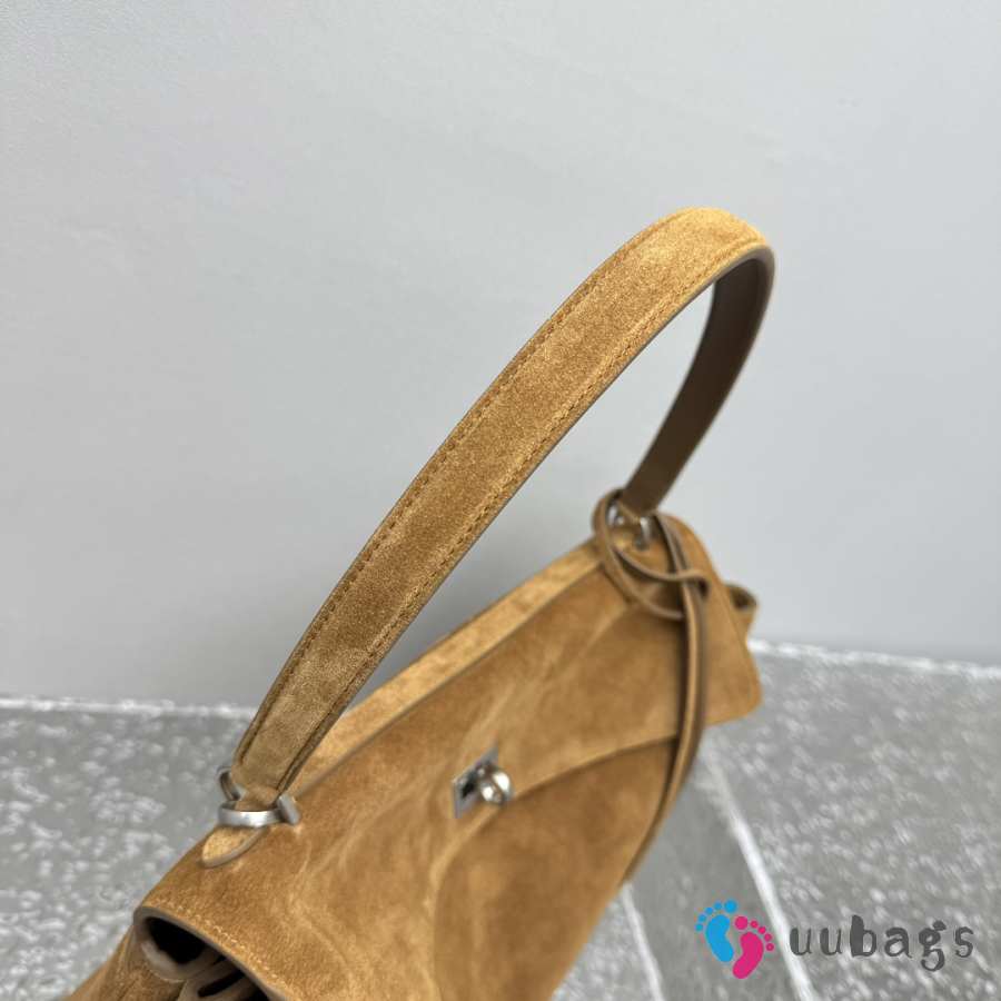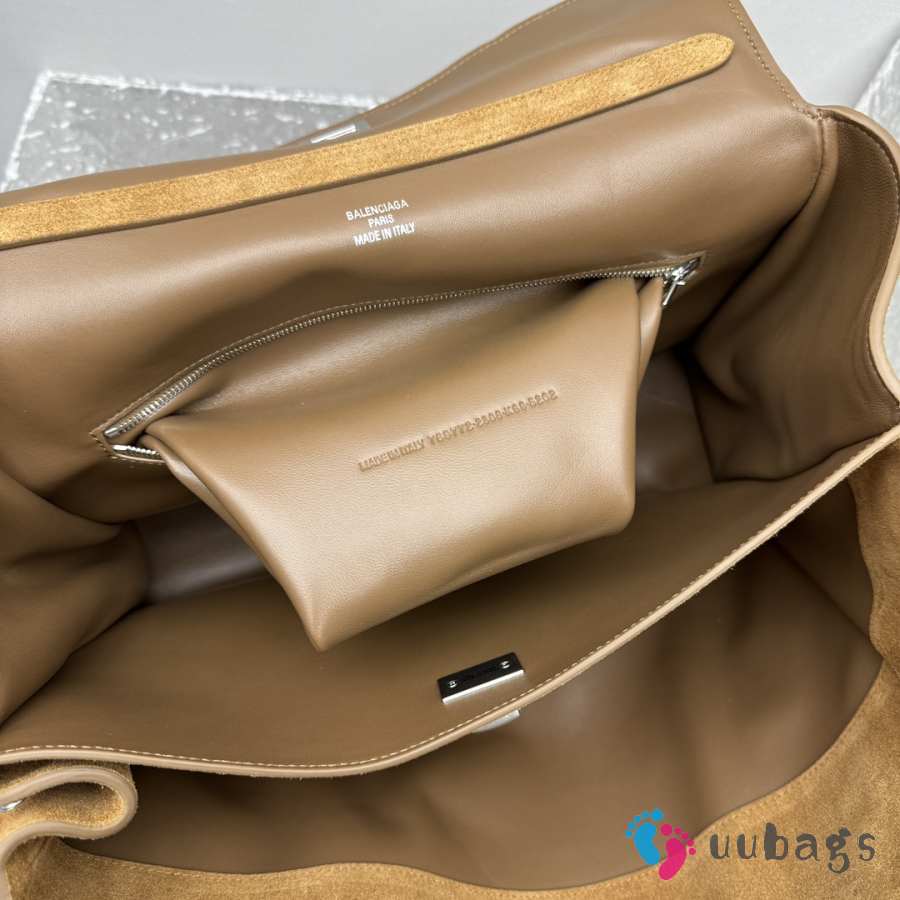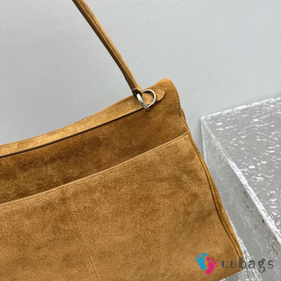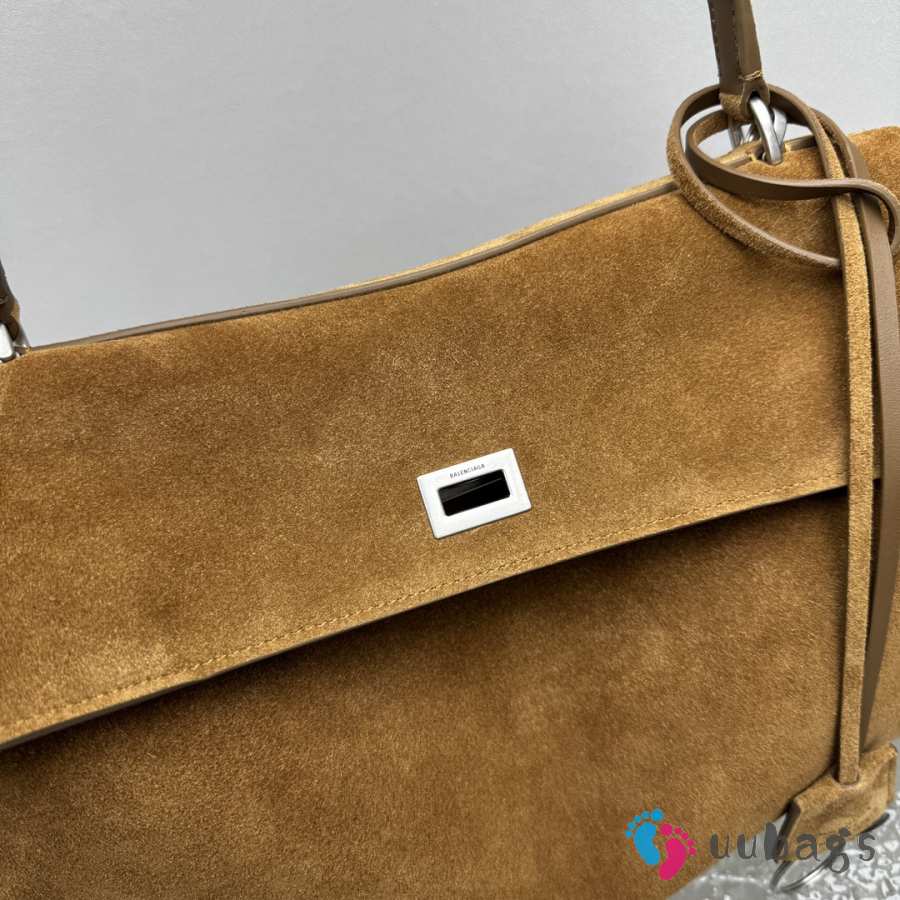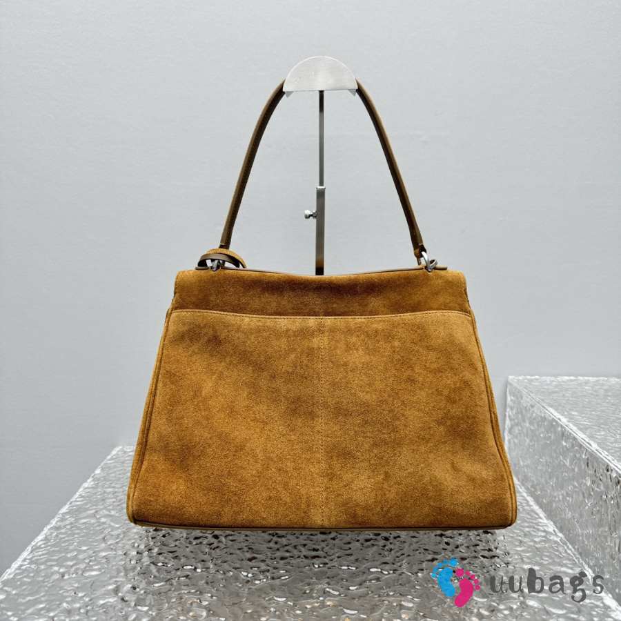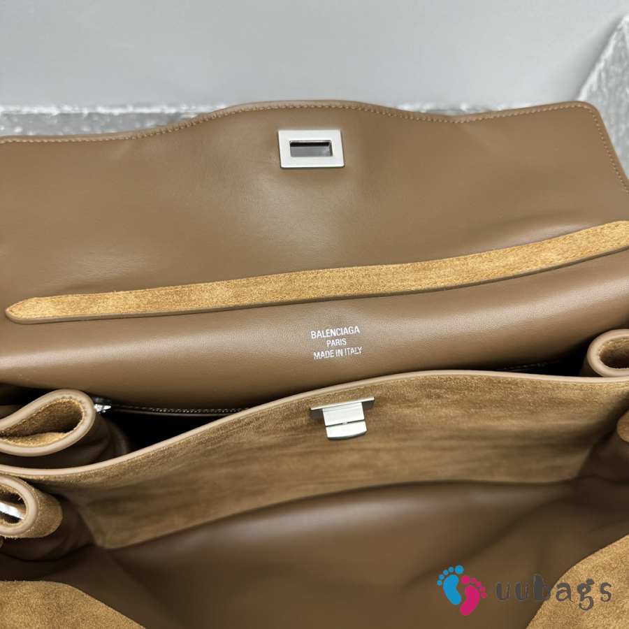 Uubags Balenciaga Rodeo handbag in large tan waxed suede calfskin and smooth calfskin, aged-silver hardware