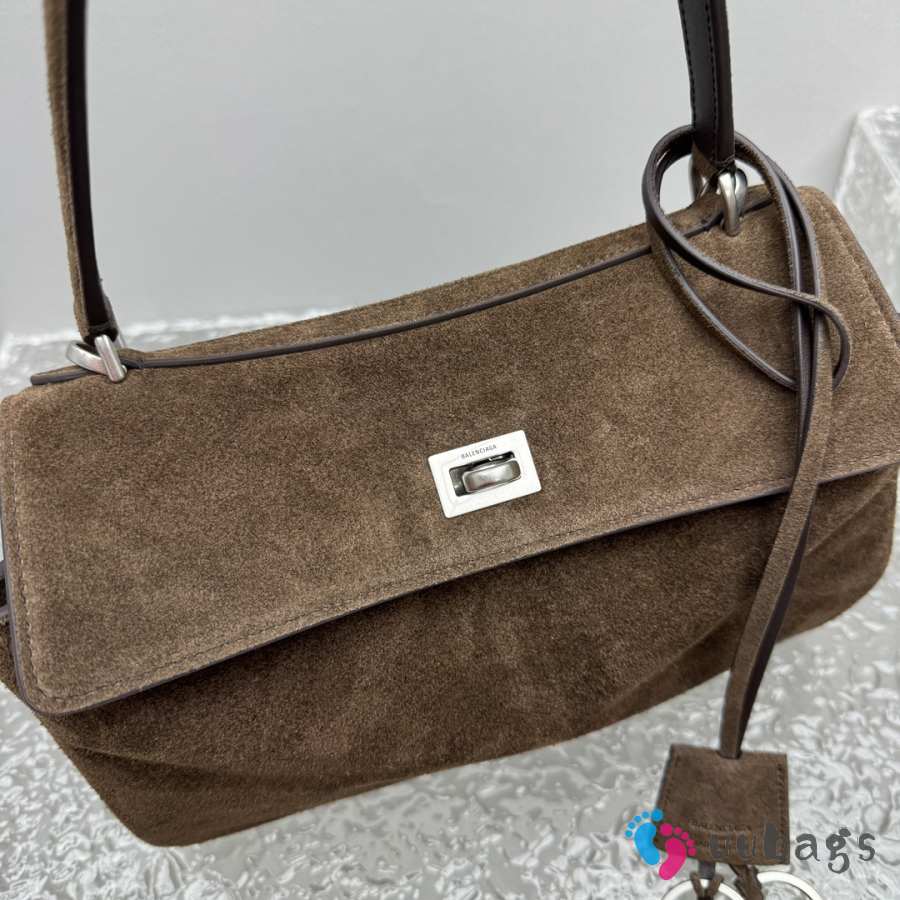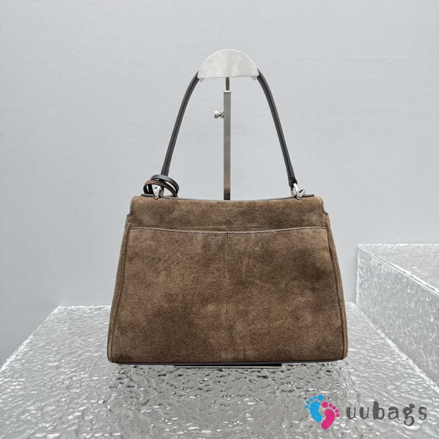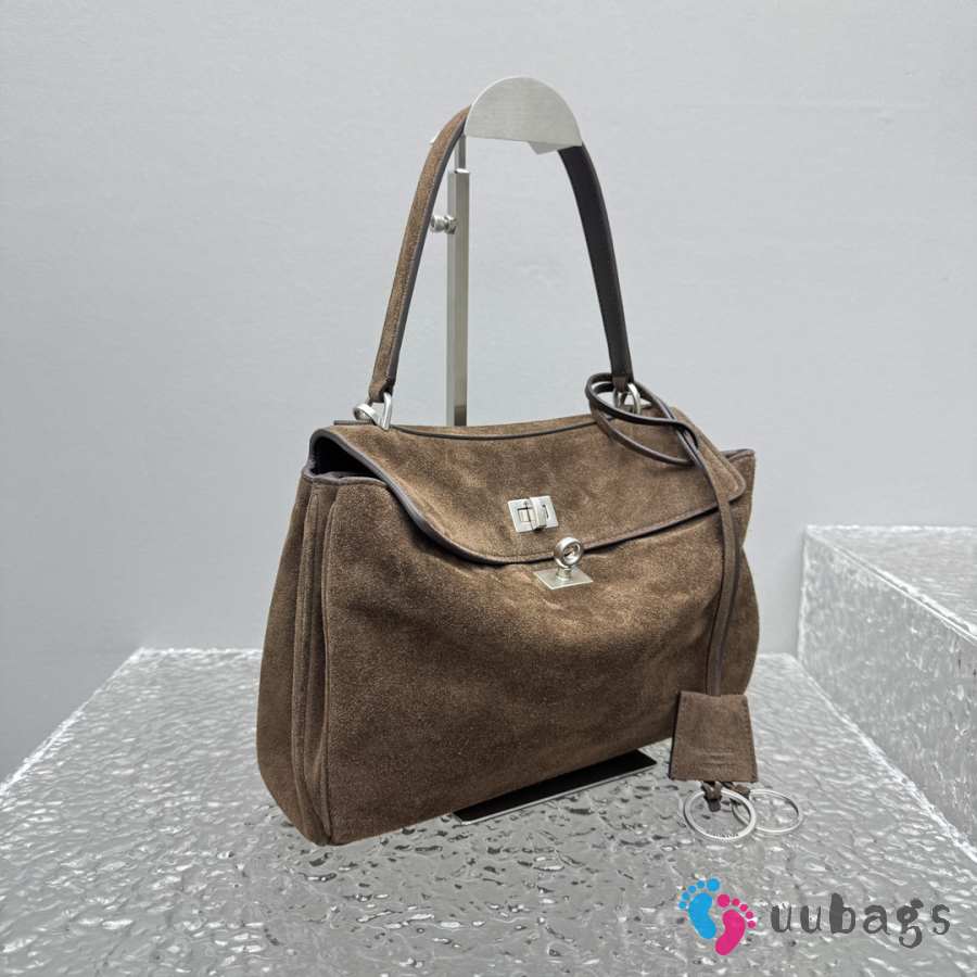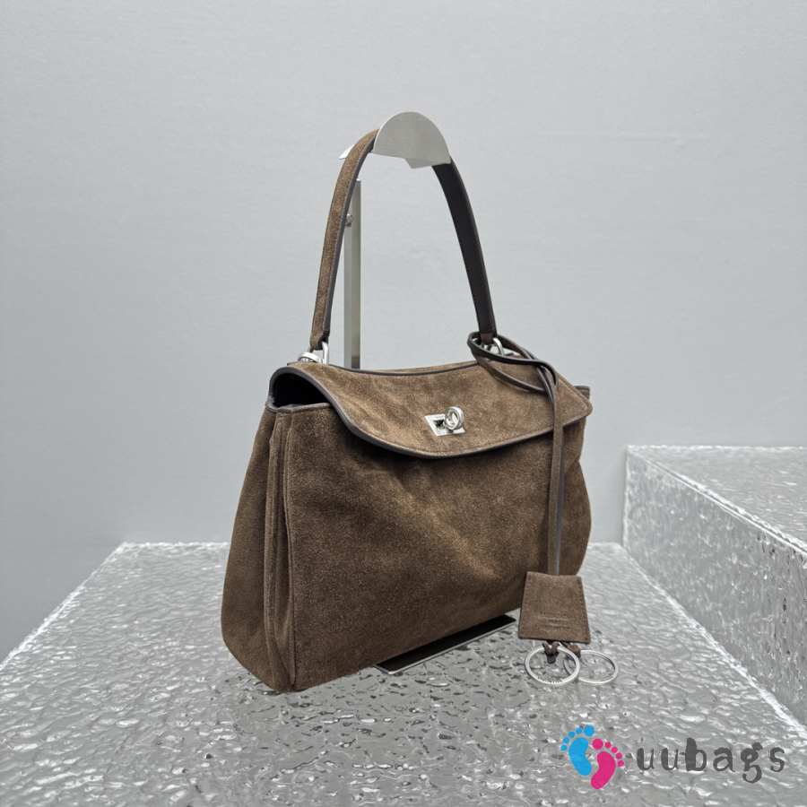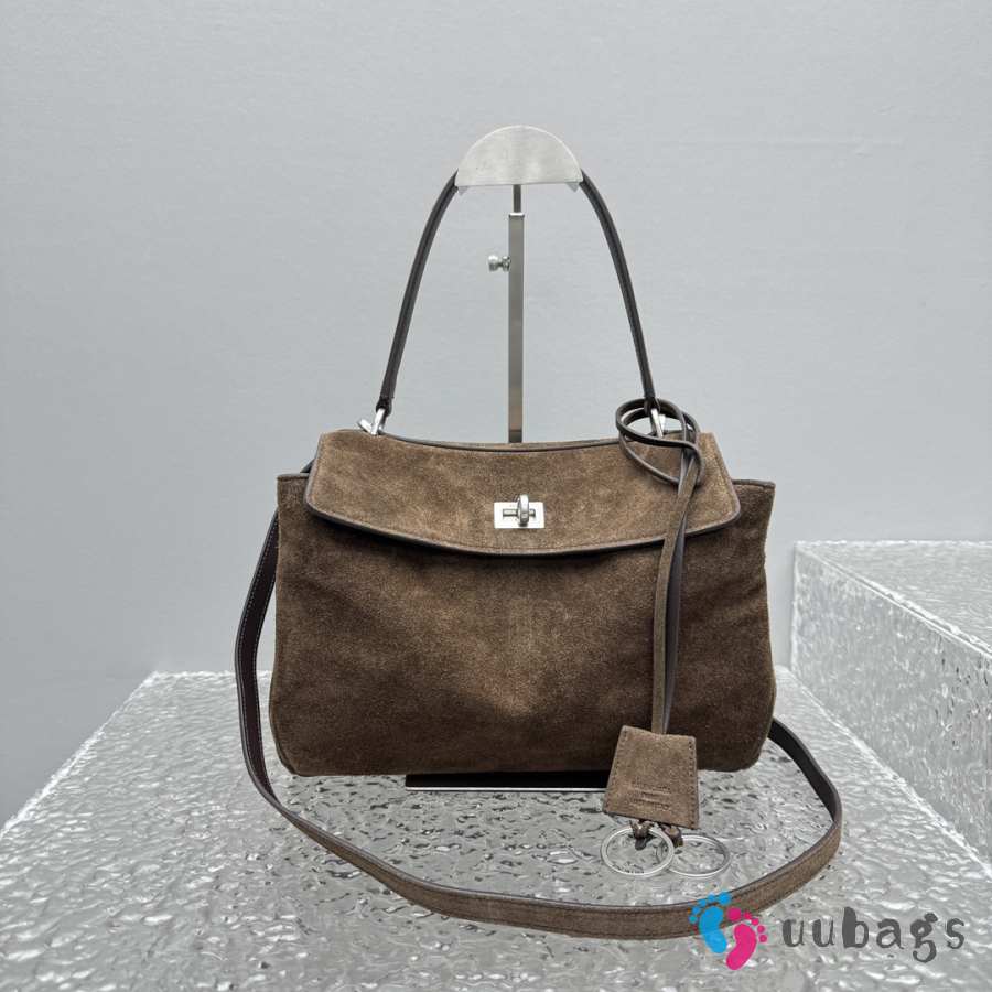 Uubags Balenciaga Rodeo handbag in medium light espresso waxed suede calfskin and smooth calfskin, aged-silver hardware