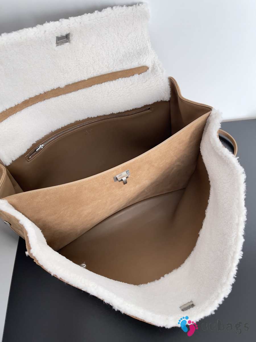 Uubags Balenciaga Rodeo Handbag Large in noce suede calfskin and white fleecel, aged-silver hardware 40x30x13cm