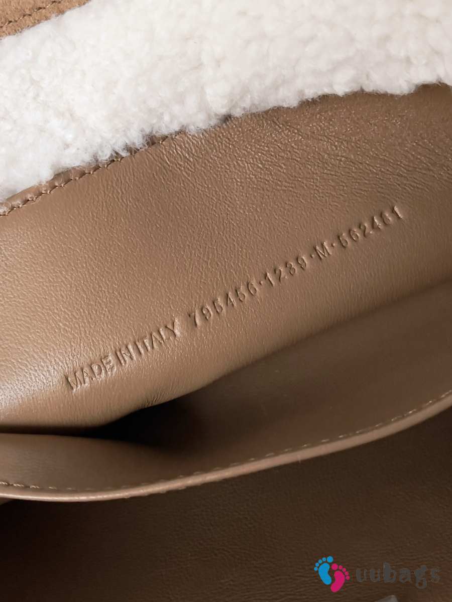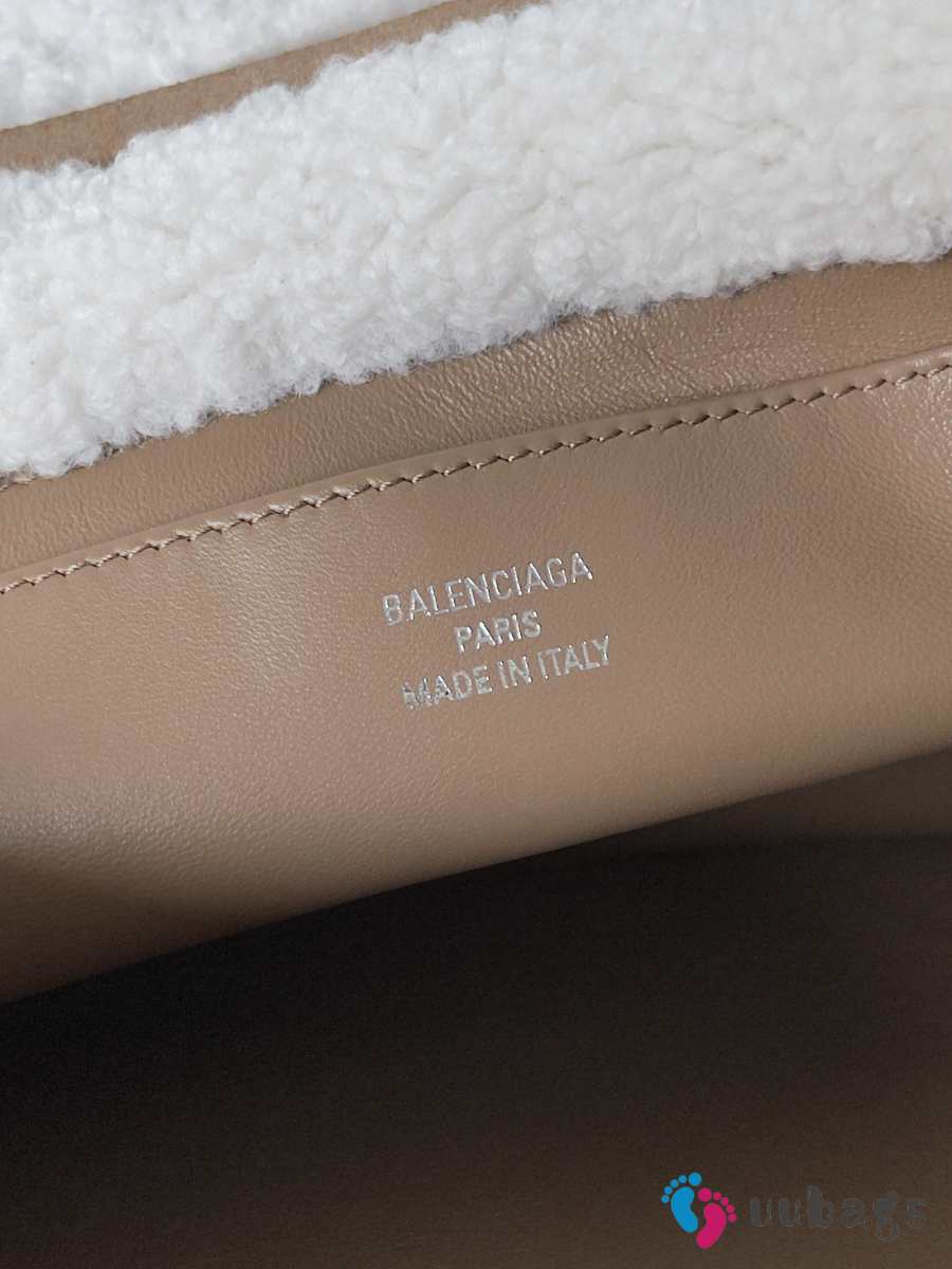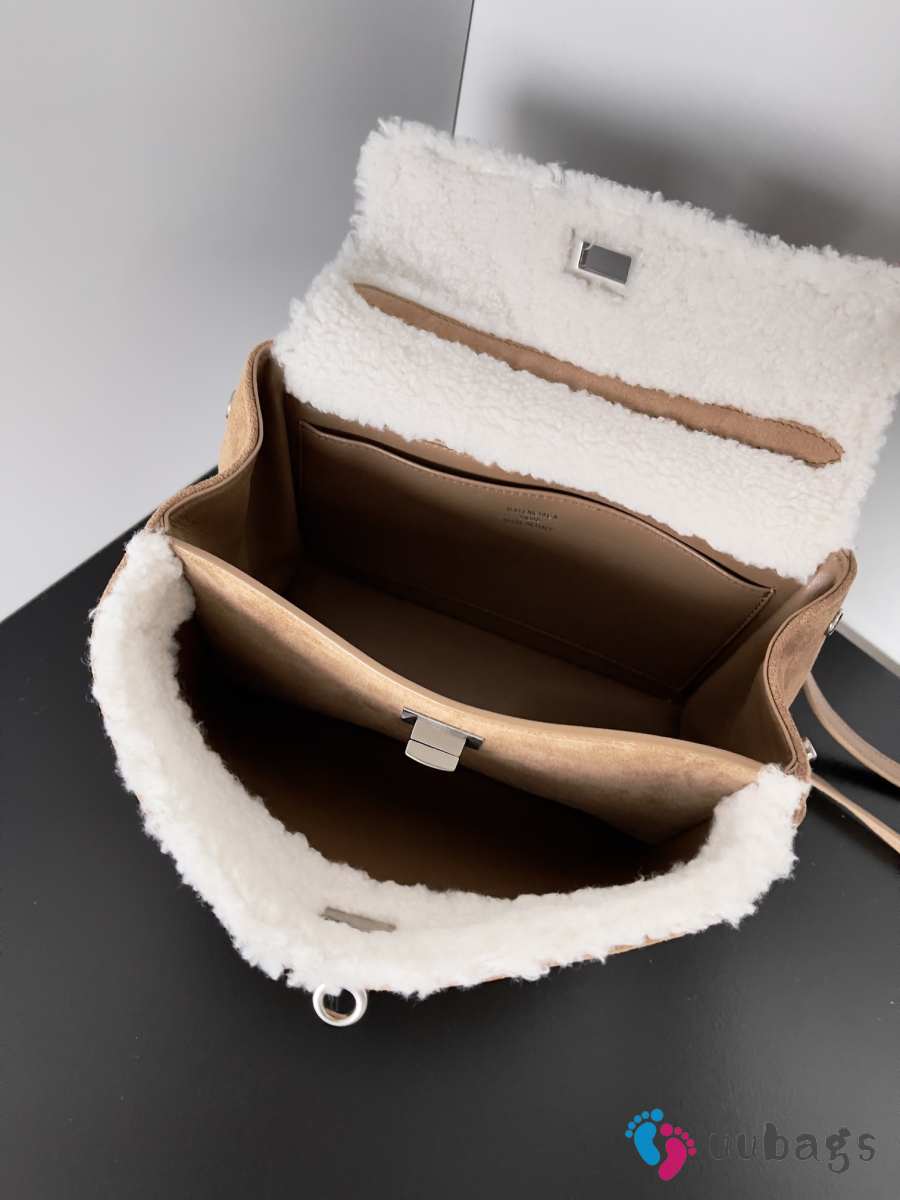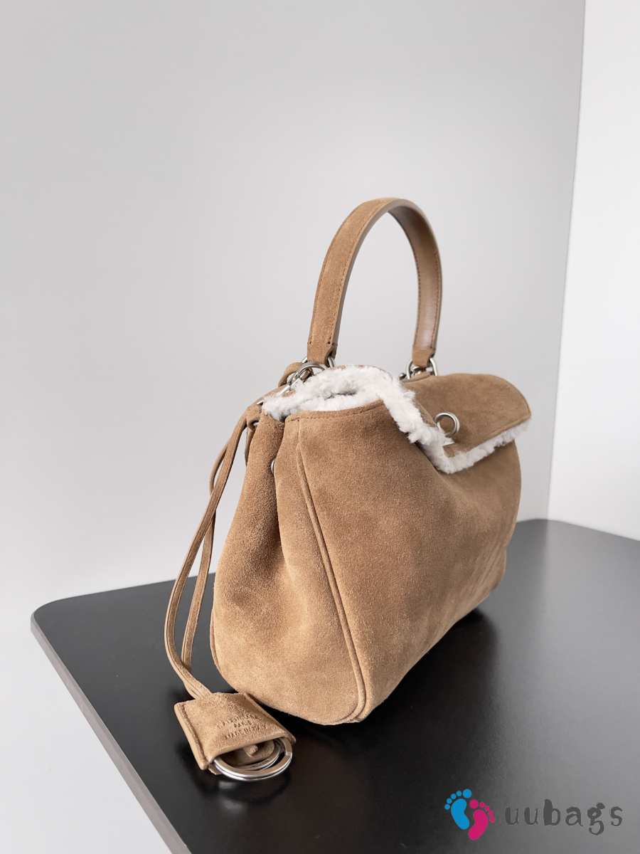 Uubags Balenciaga Rodeo Handbag Mini in noce suede calfskin and white fleecel, aged-silver hardware 23x17x10cm