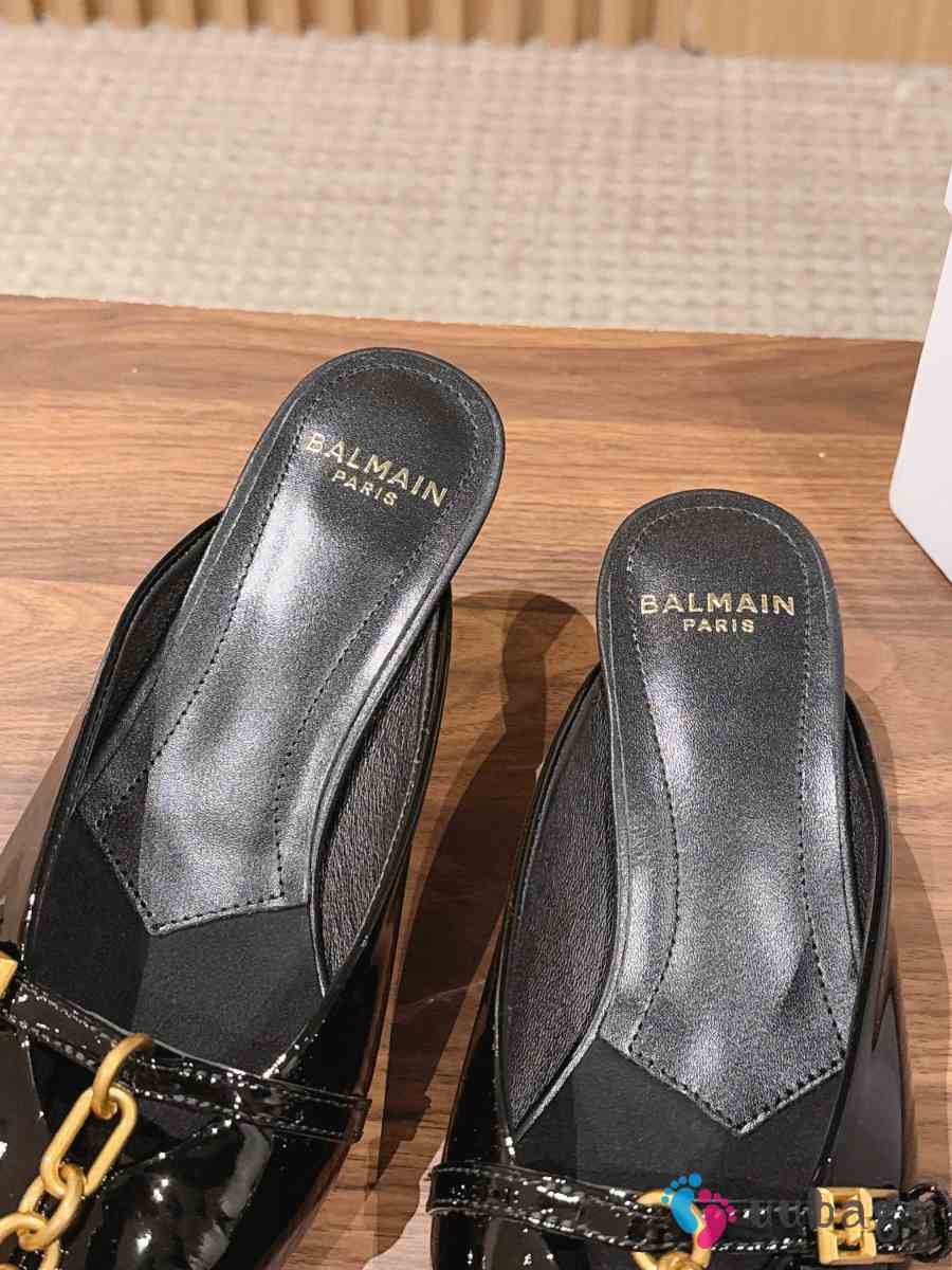 Uubags Balmain Sync Patent Leather Mules In Black 4.5cm