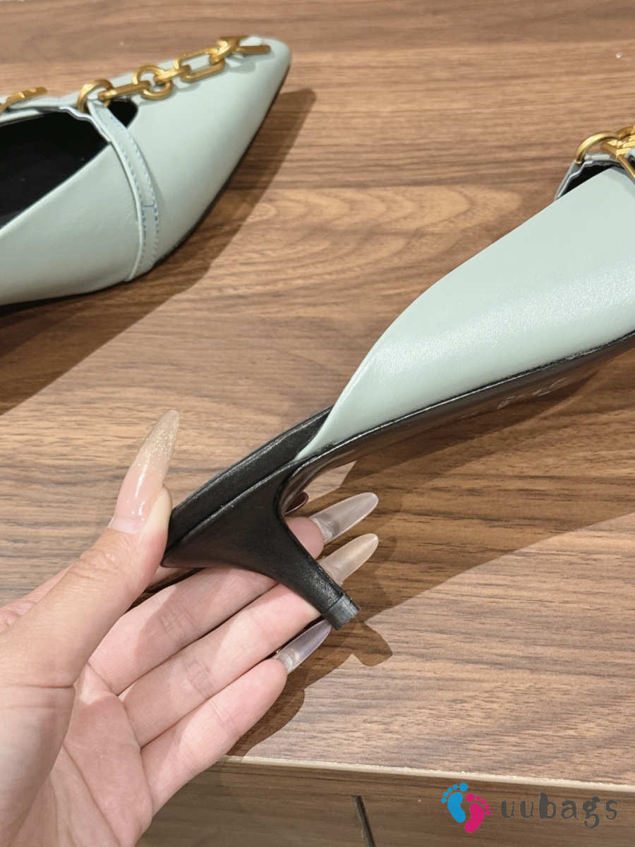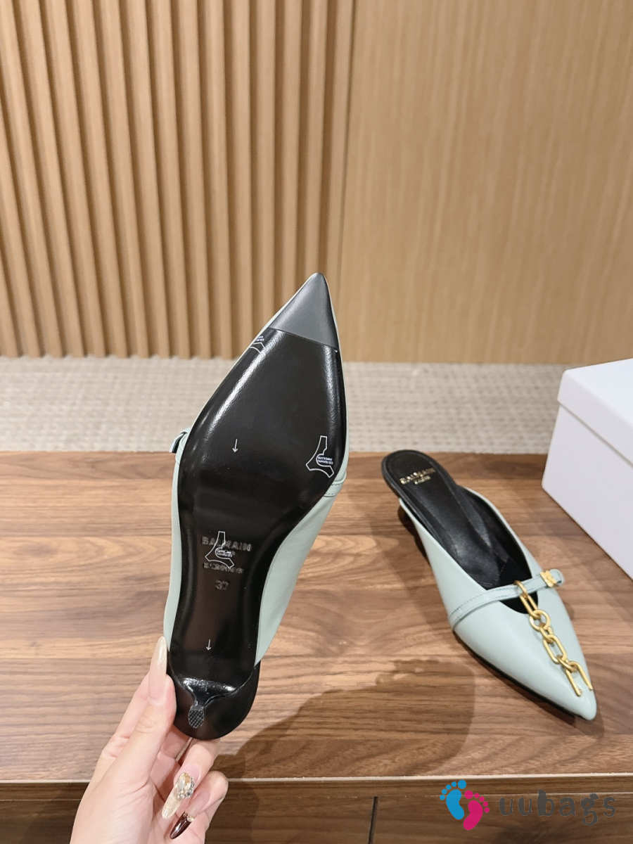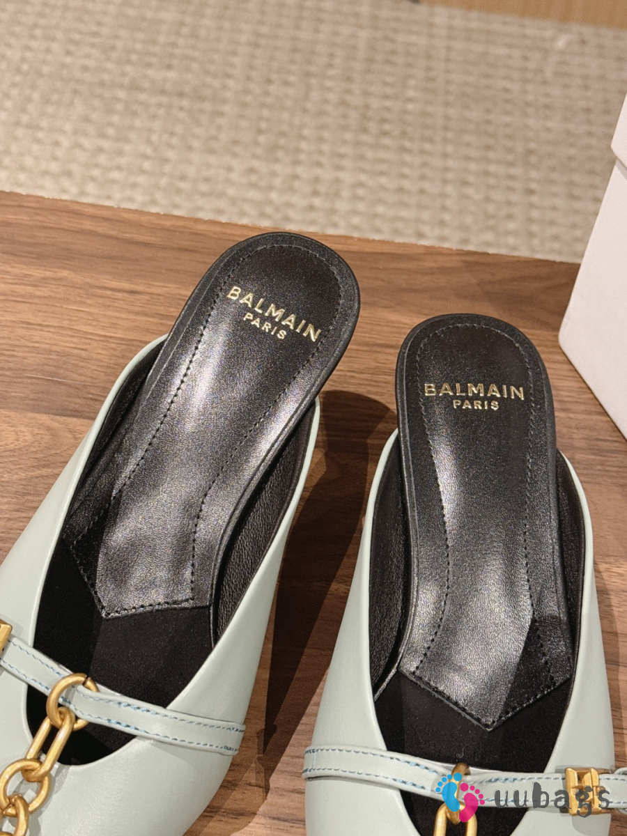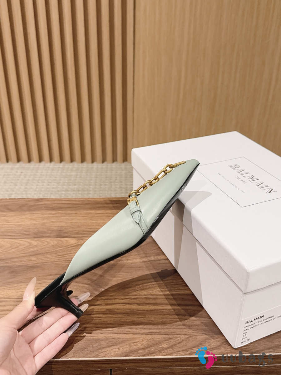 Uubags Balmain Sync Patent Leather Mules In Mint Green 4.5cm