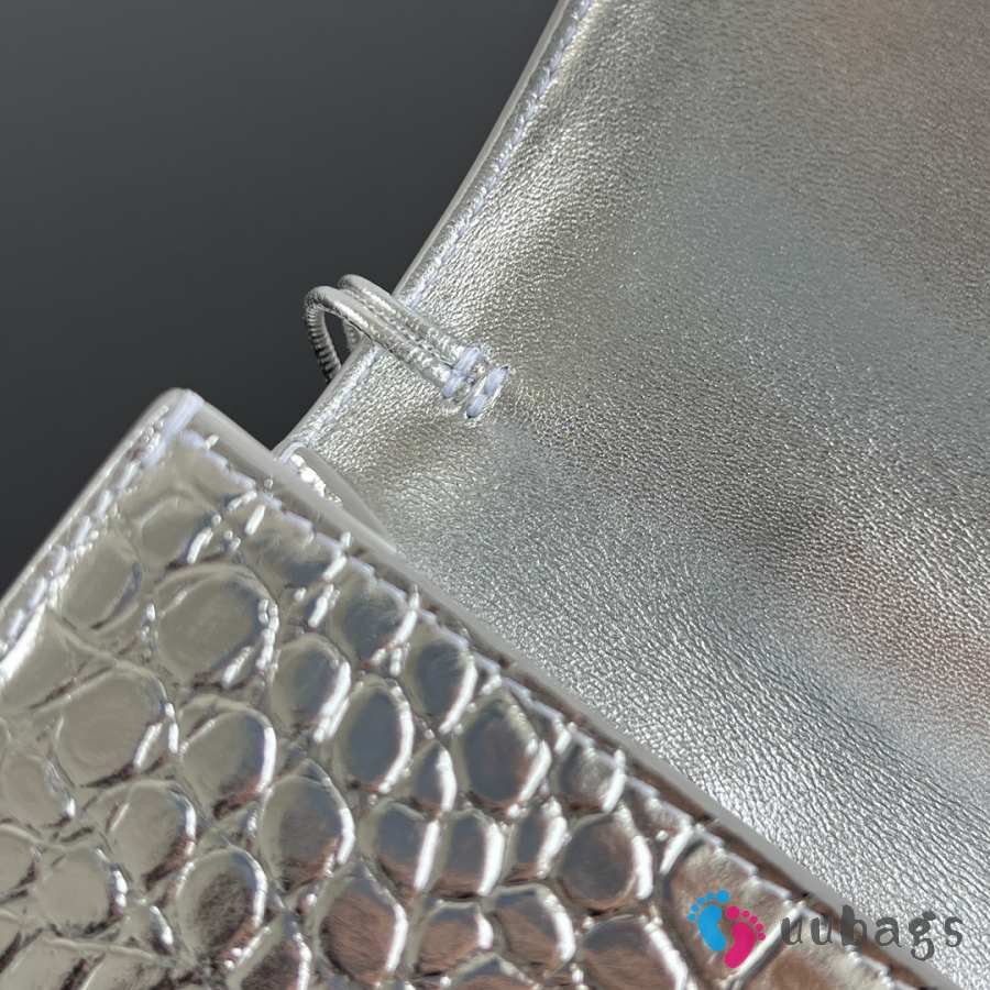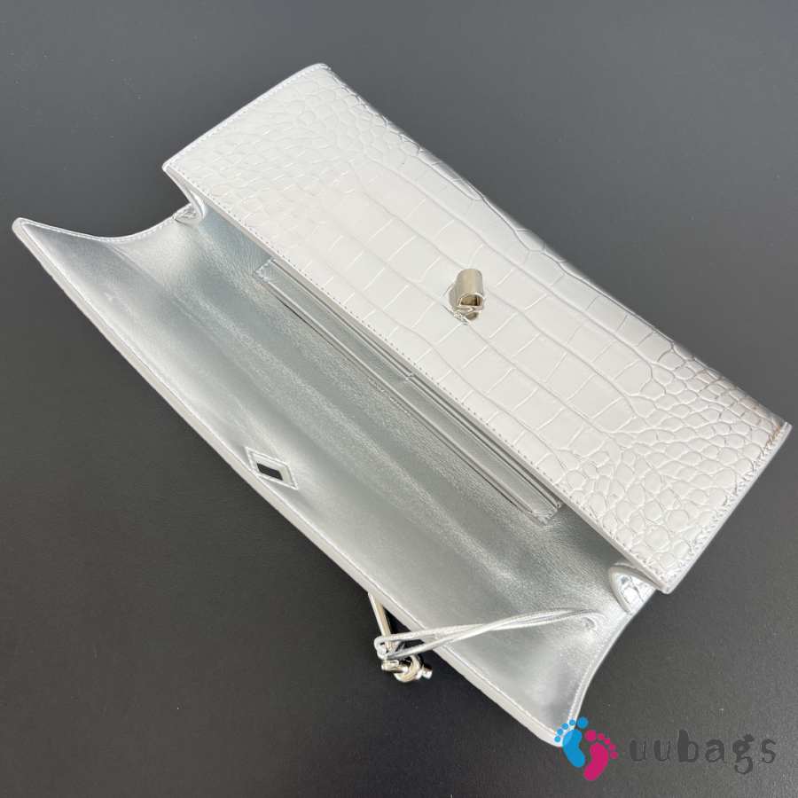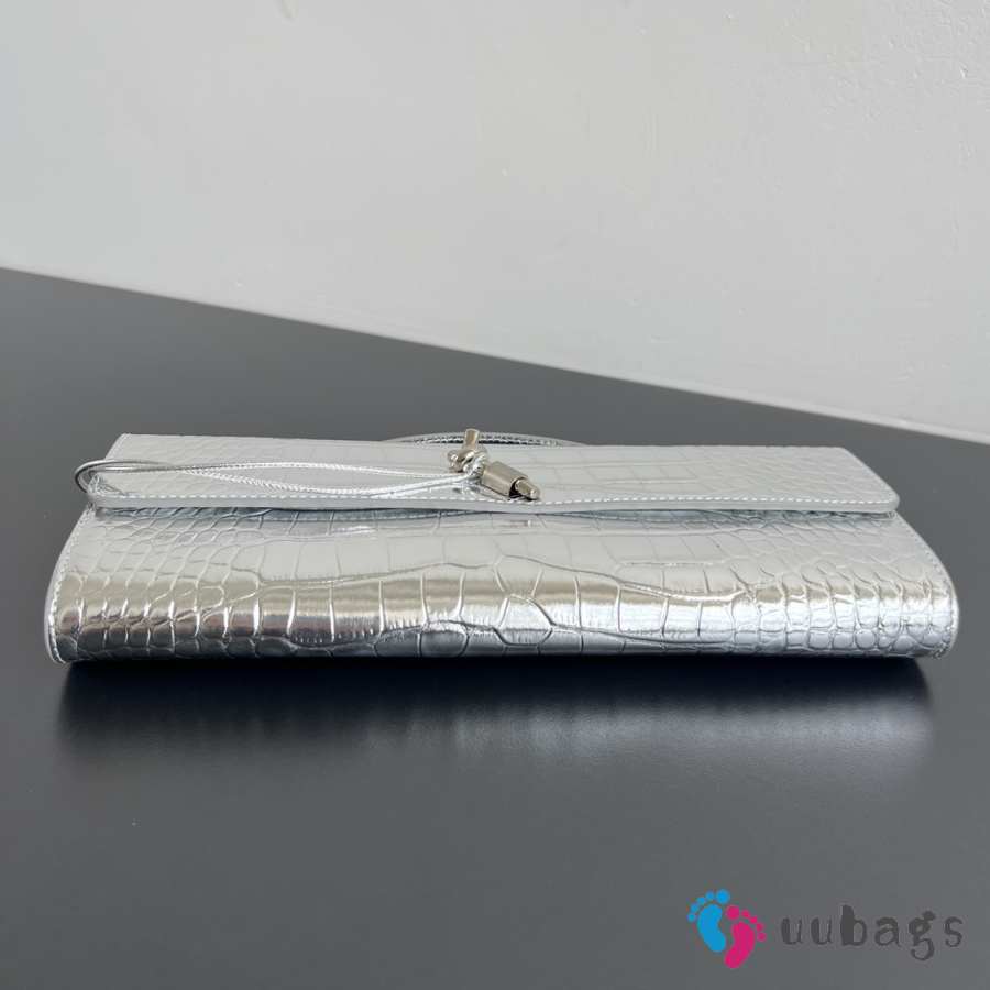 Uubags Bottega Veneta Andiamo Clutch in Metallic Silver Crocodile-Embossed Leather 31x13x3cm
