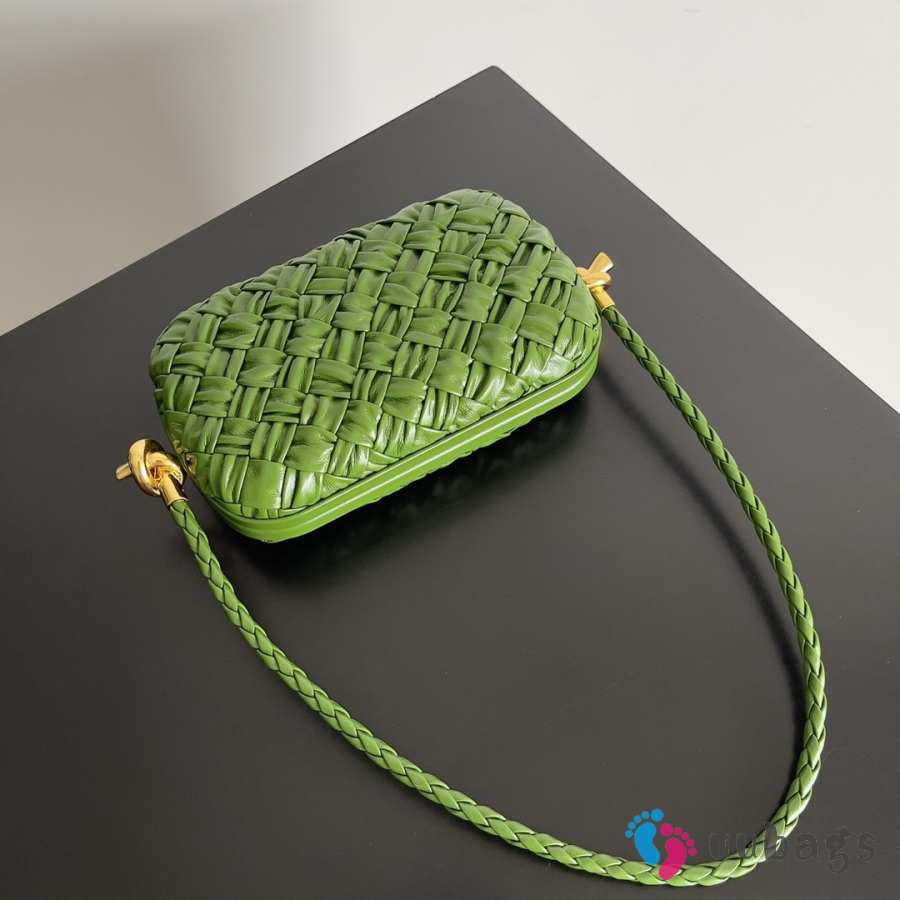 Uubags Bottega Veneta Knot Clutch Bag On Strap In Green Lambskin 20.5x6x12.5cm
