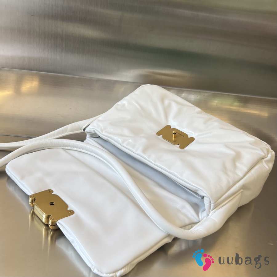 Uubags Bottega Veneta Pad Crossbody Bag In White & Brass 28x14x10cm