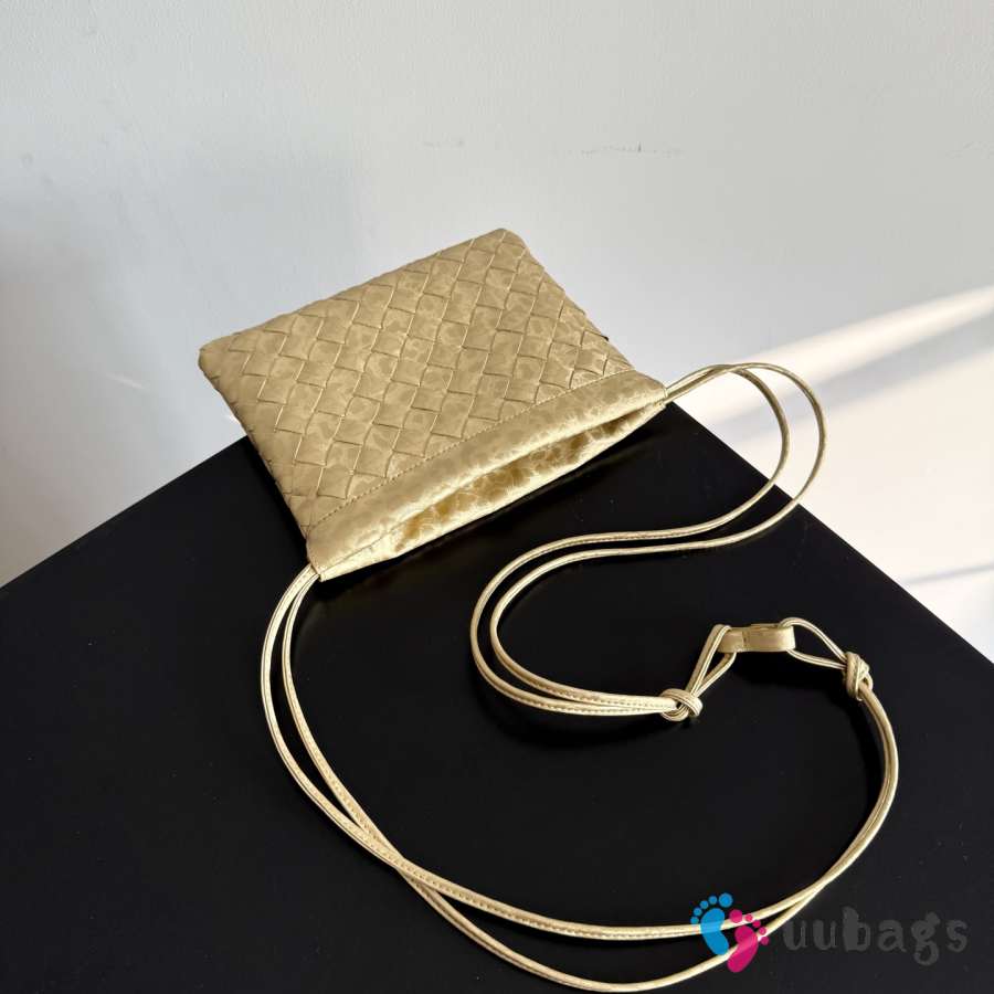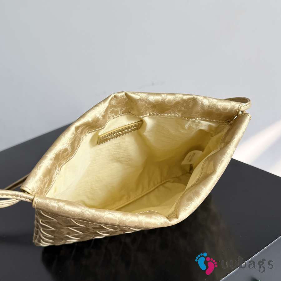 Uubags Bottega Veneta Small Dustbag Intrecciato Gold Lamina Satin Leather Pouch 21x16.6x1cm