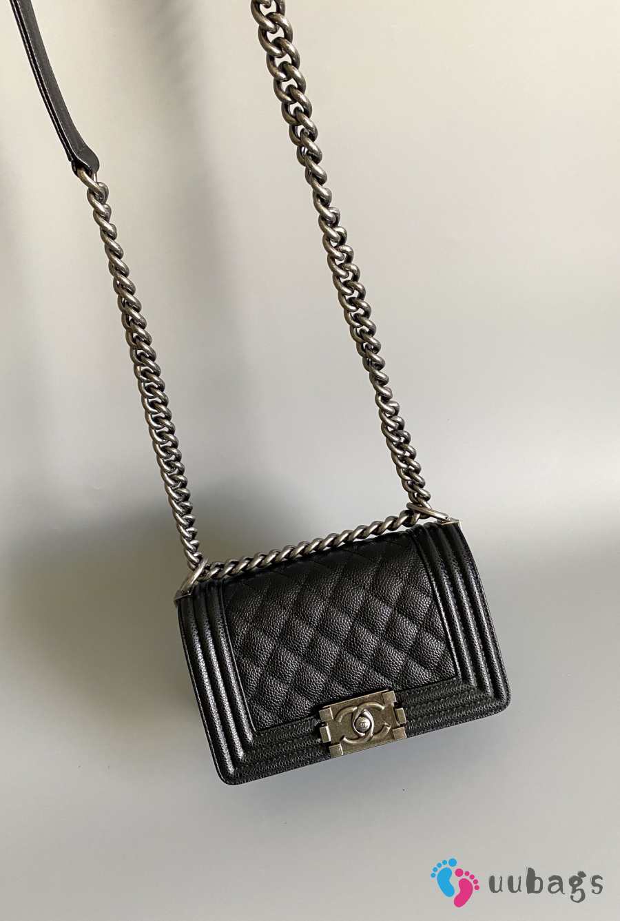 Uubags Boy Chanel small handbag in calfskin & ruthenium-plated metal pink 12x20.5x8.5cm
