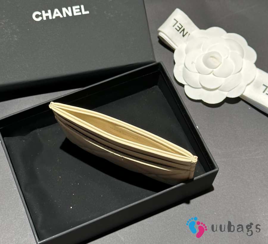 Uubags Chanel 19 Card Holder Quilted Leather Light Beige 7.5x11.2x0.5cm