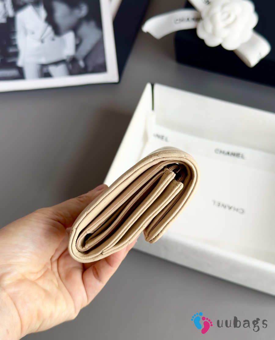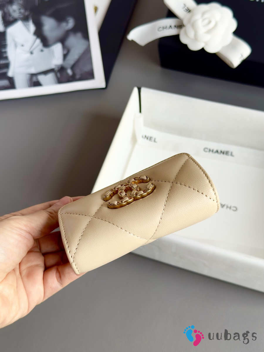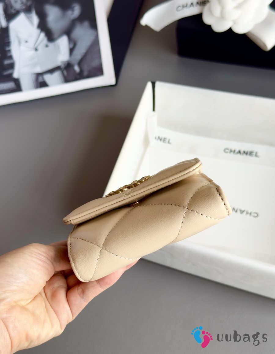 Uubags Chanel 19 Small Flap Wallet Lambskin Light Beige 9.5x10.7x2.7cm
