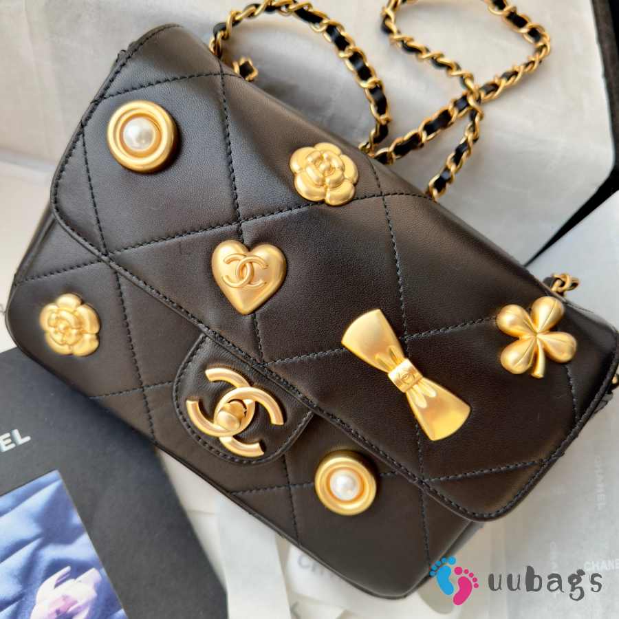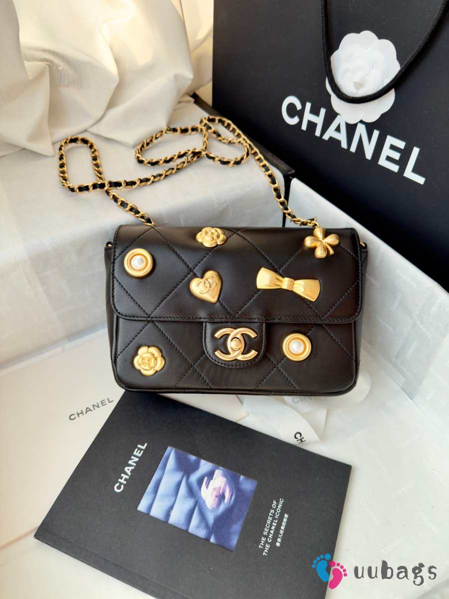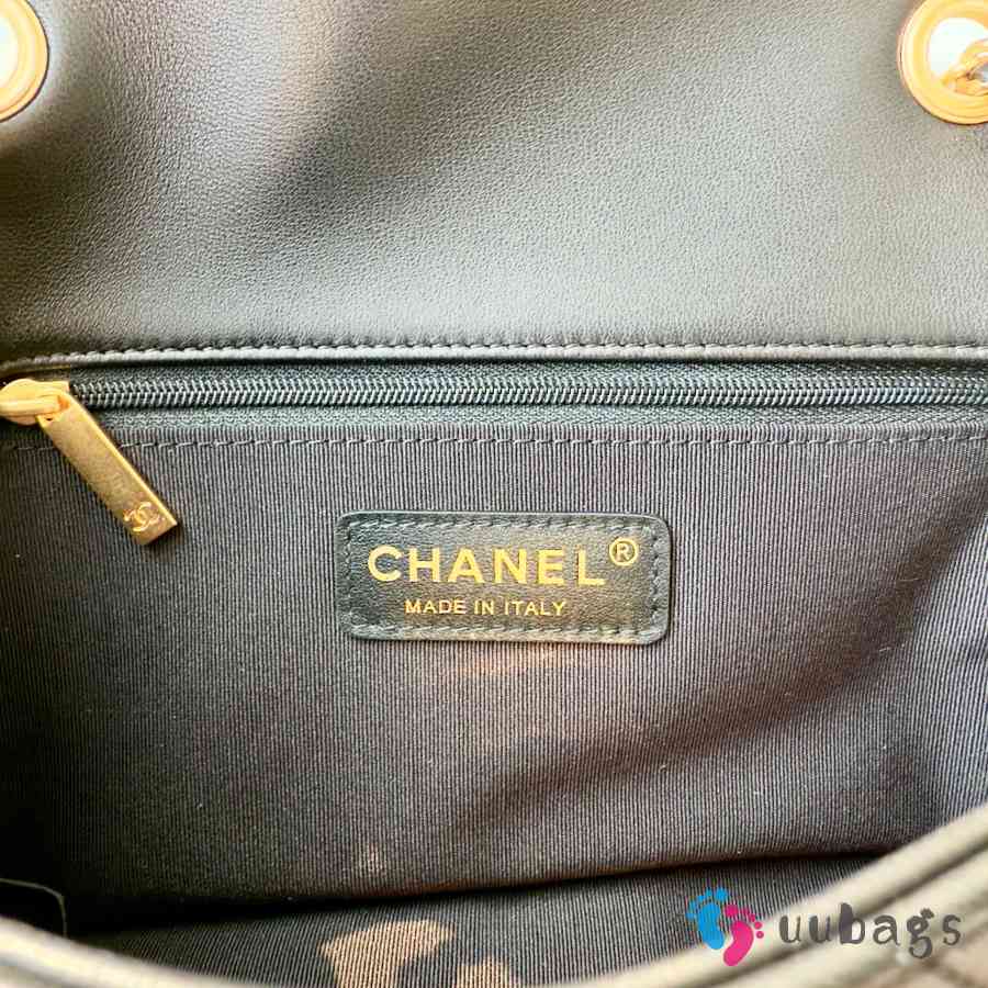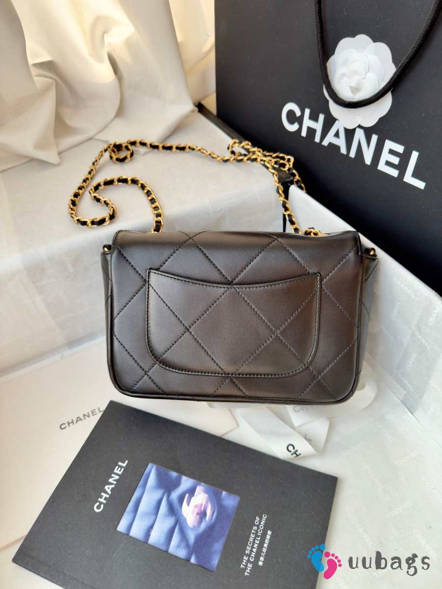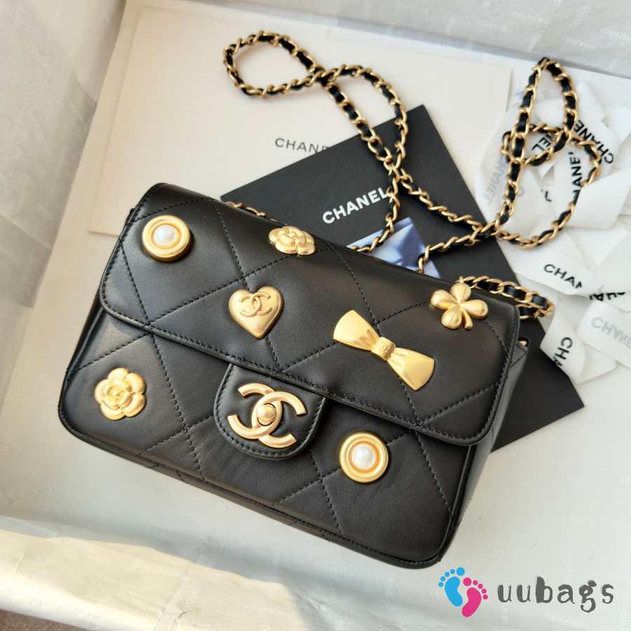 Uubags Chanel 2021 icon quilted chain shoulder bag in black lambskin 19x14x6.5cm