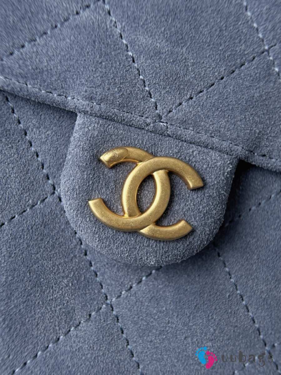 Uubags Chanel flap bag in blue with gold hardware 12x20x6cm