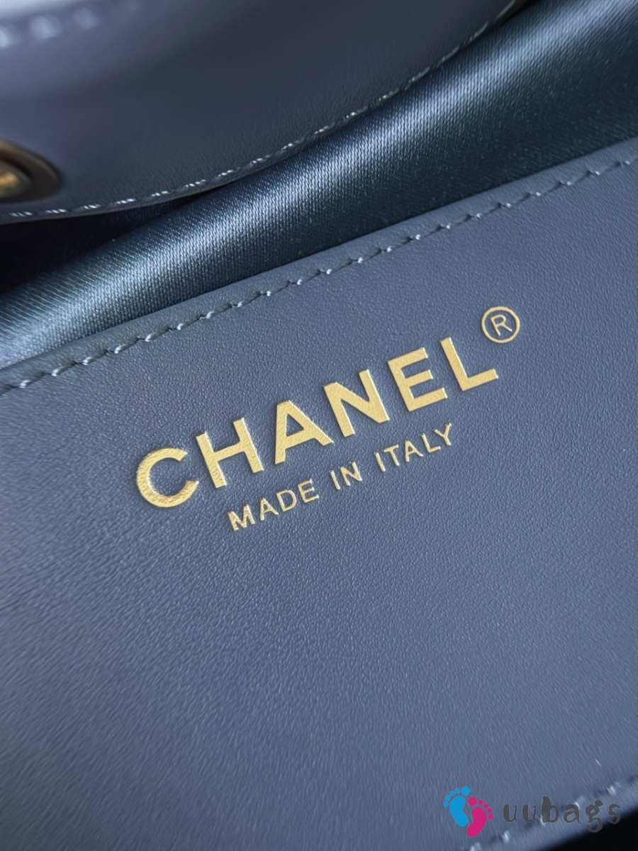 Uubags Chanel Blue Quilted Denim Mini 22 Bag & Silver Metallic 22x16x16cm