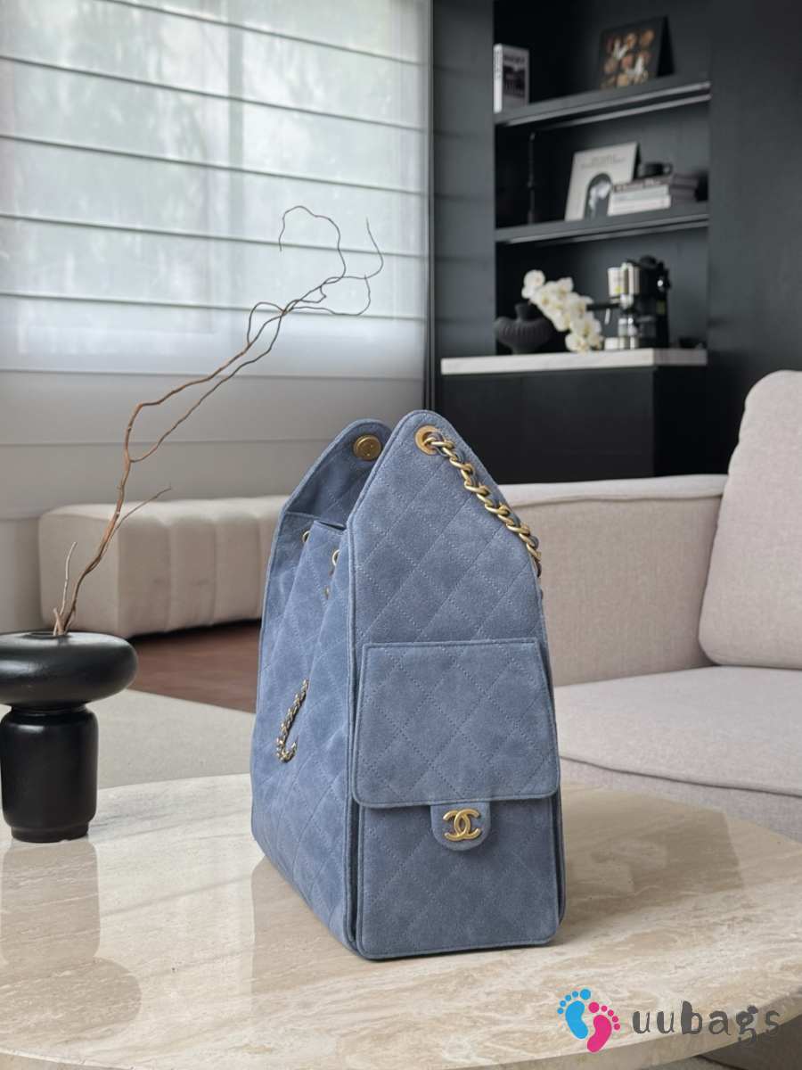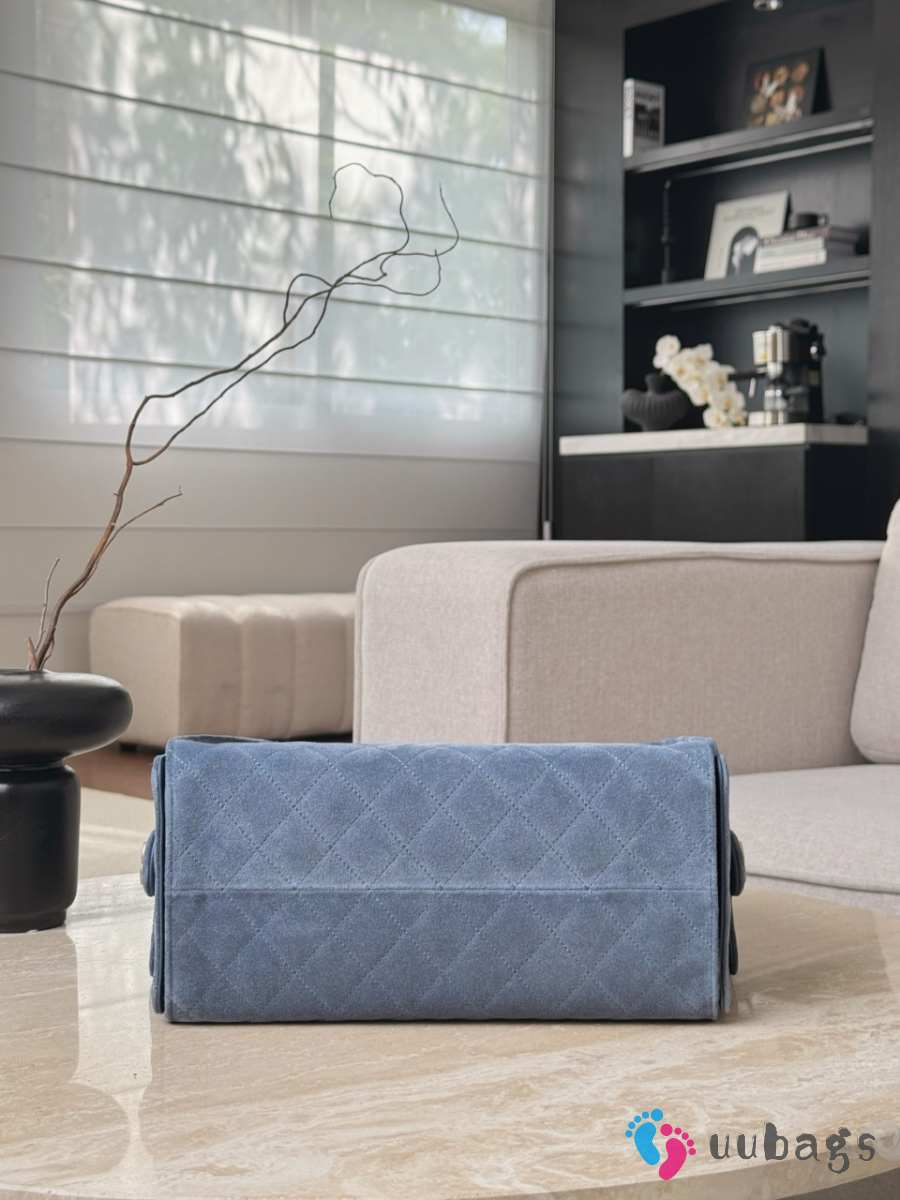 Uubags Chanel 25 Medium Handbag Dark Blue Suede Calfskin & Gold Metal 40x30x15cm