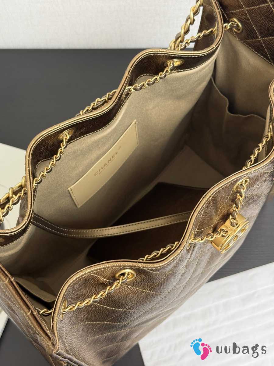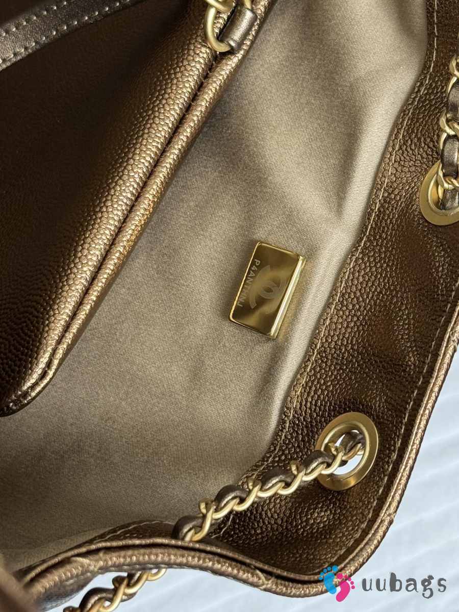 Uubags Chanel 25 Medium Handbag Grained Metallic Calfskin & Gold Metal In Deep Gold 40x30x15cm