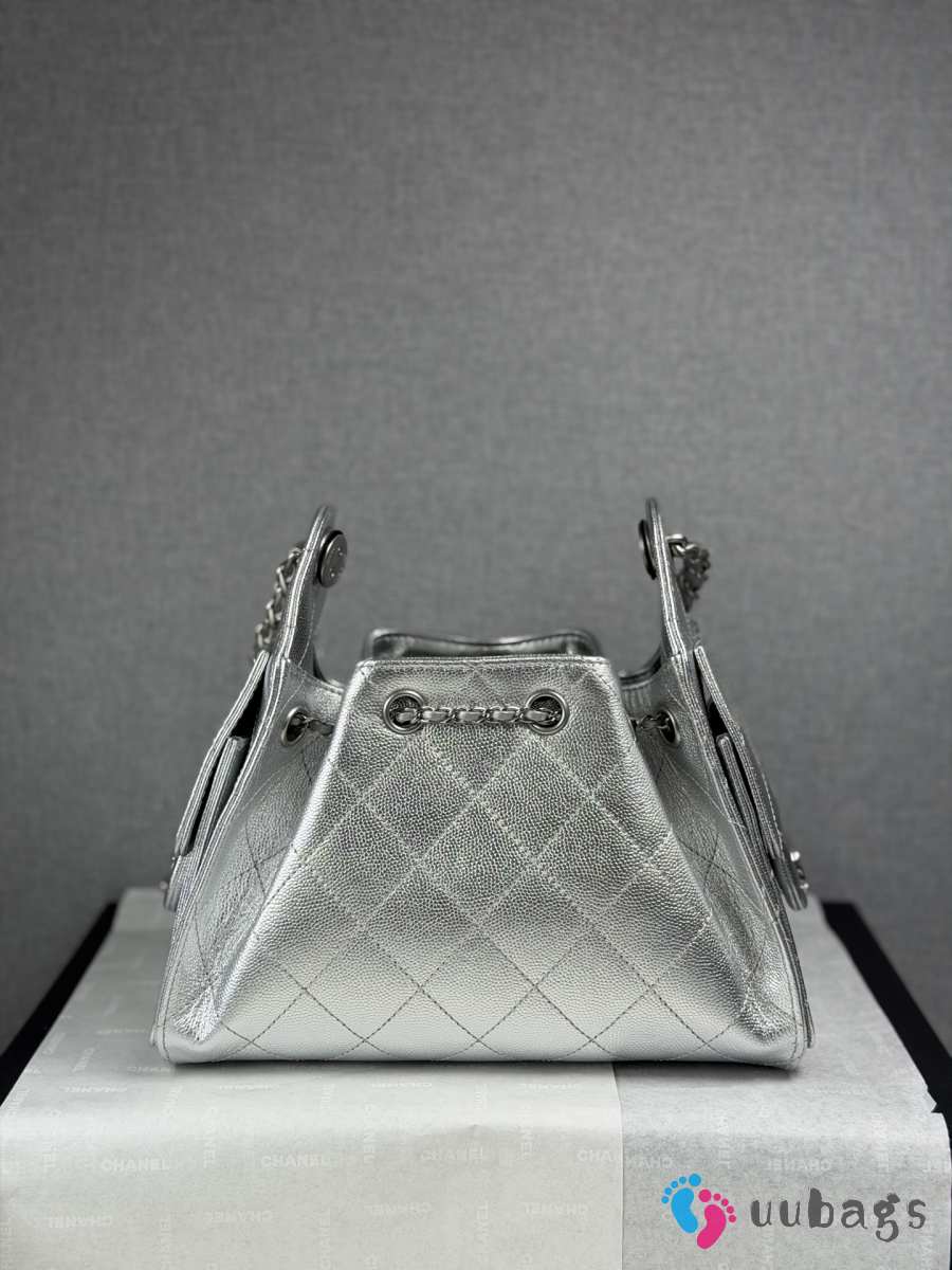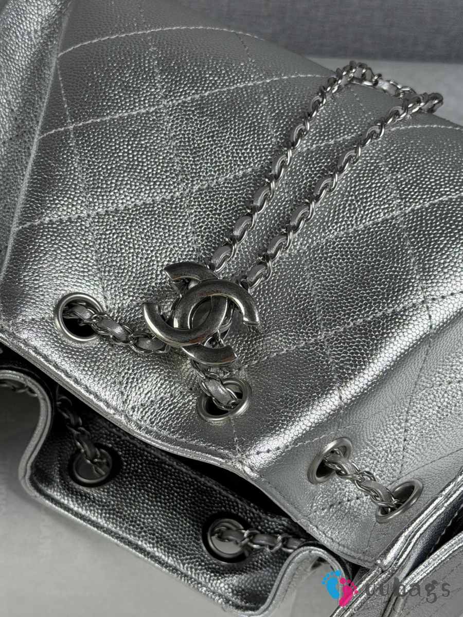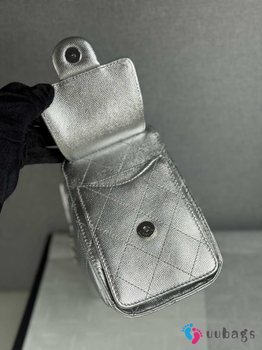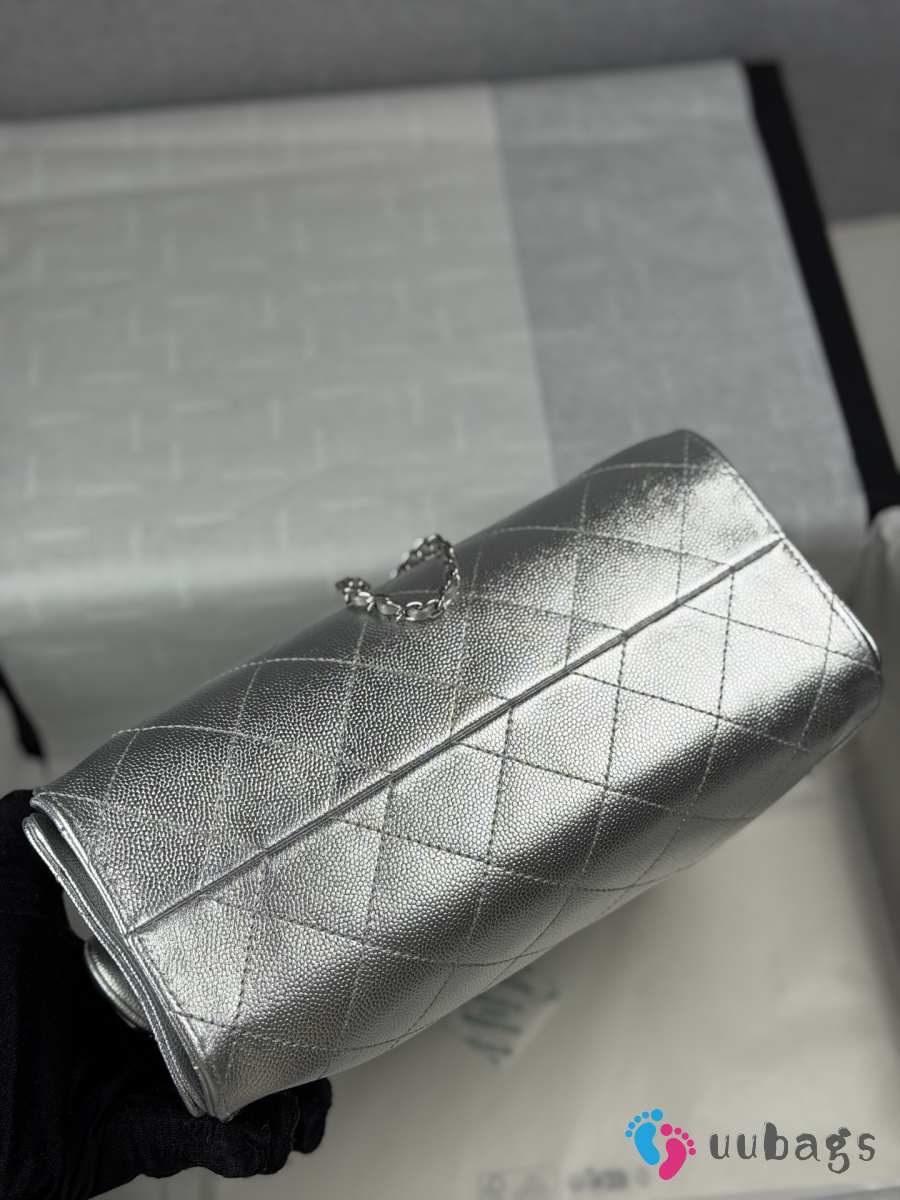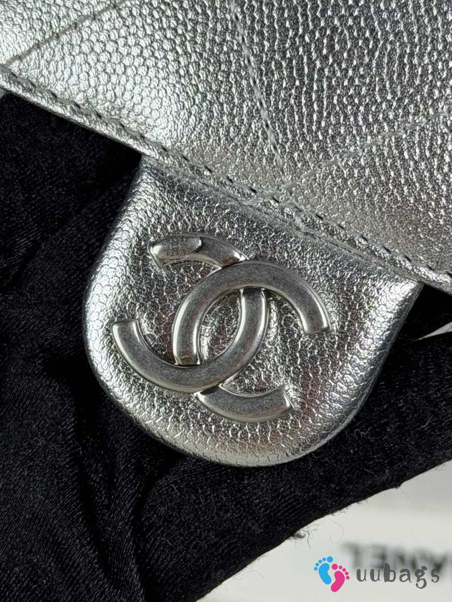 Uubags Chanel 25 Mini Handbag Metallic Grained Calfskin & Silver-Tone Metal Silvery 20x22x12.5cm