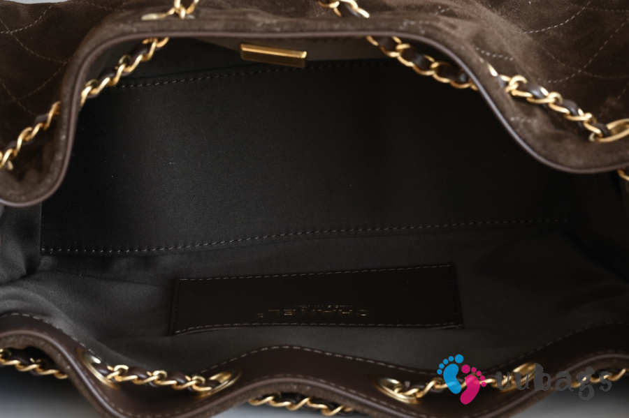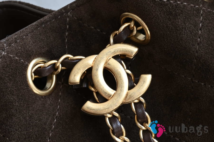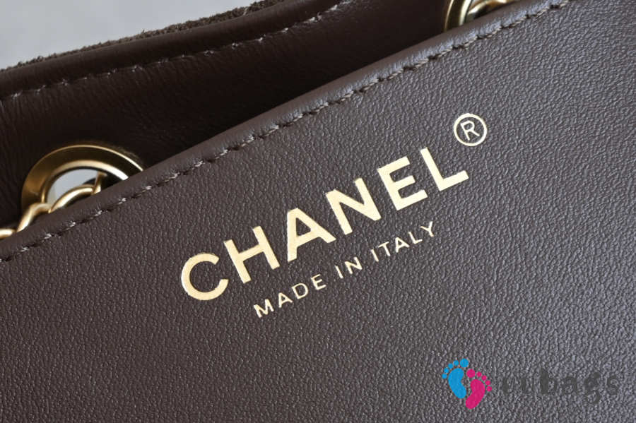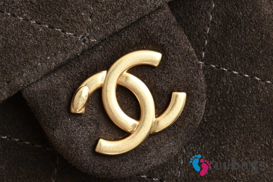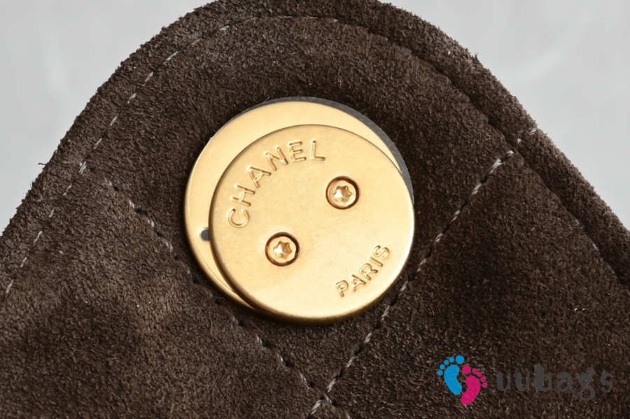Uubags Chanel 25 Small Bag Suede Calfskin & Gold Metal Dark Brown 20x22x12.5cm